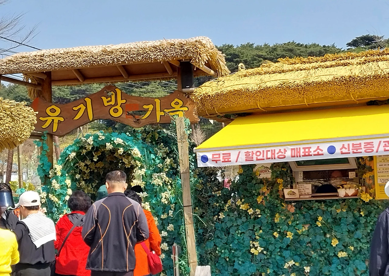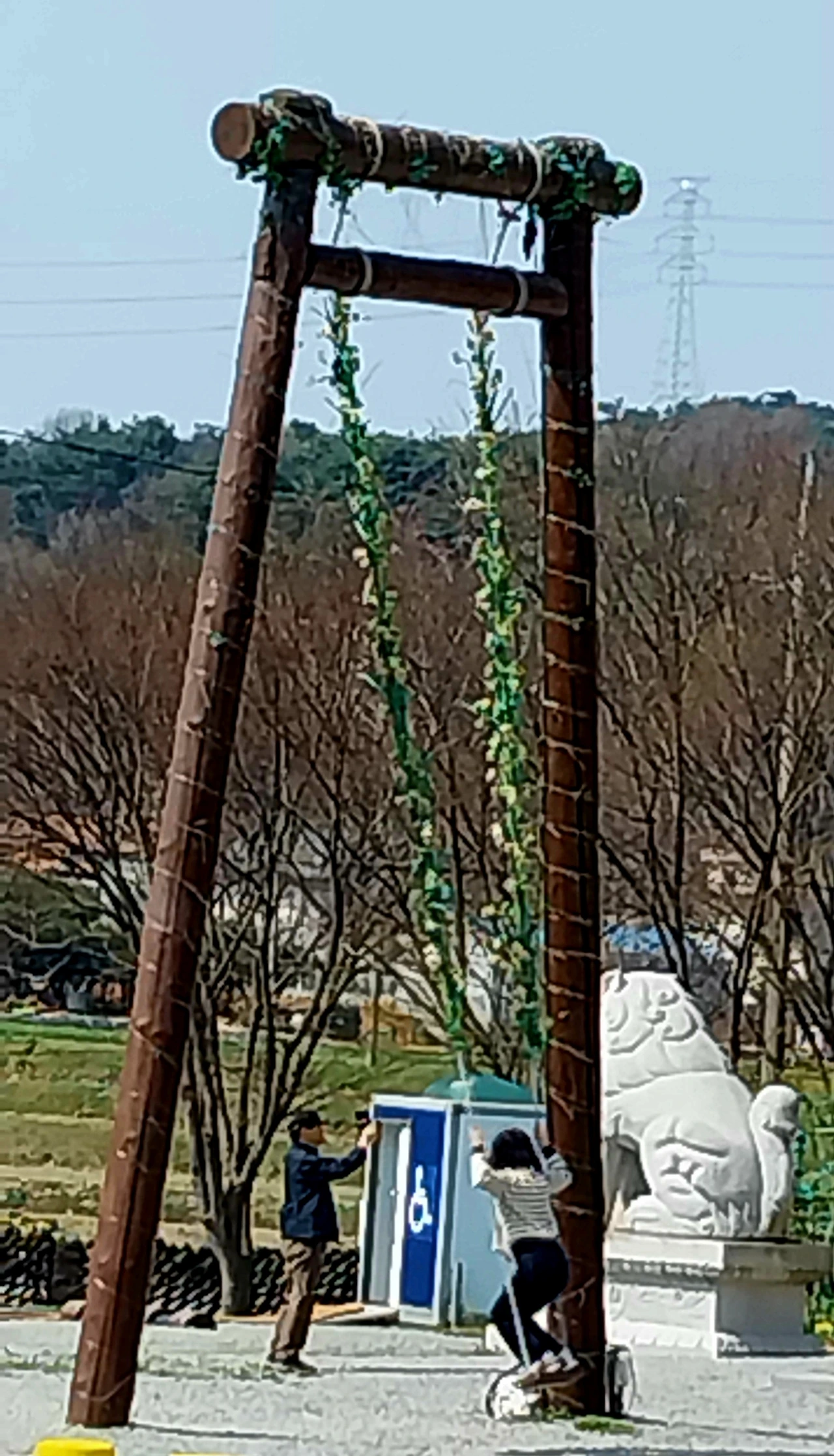 입장하는 꽃 문도 있고, 한번 올라 타보라는 멋스러운 그네도 있고 입구에 수선화 판매대도 있었다