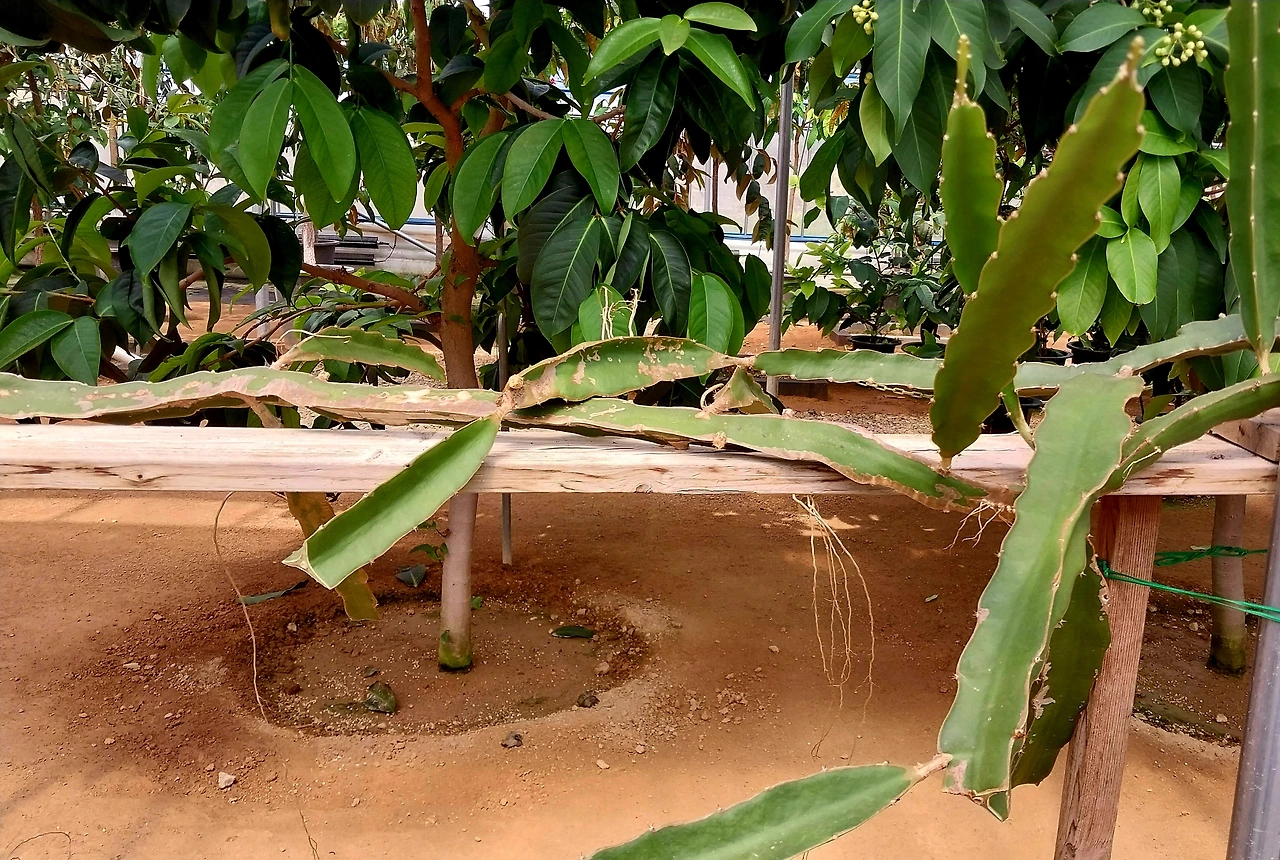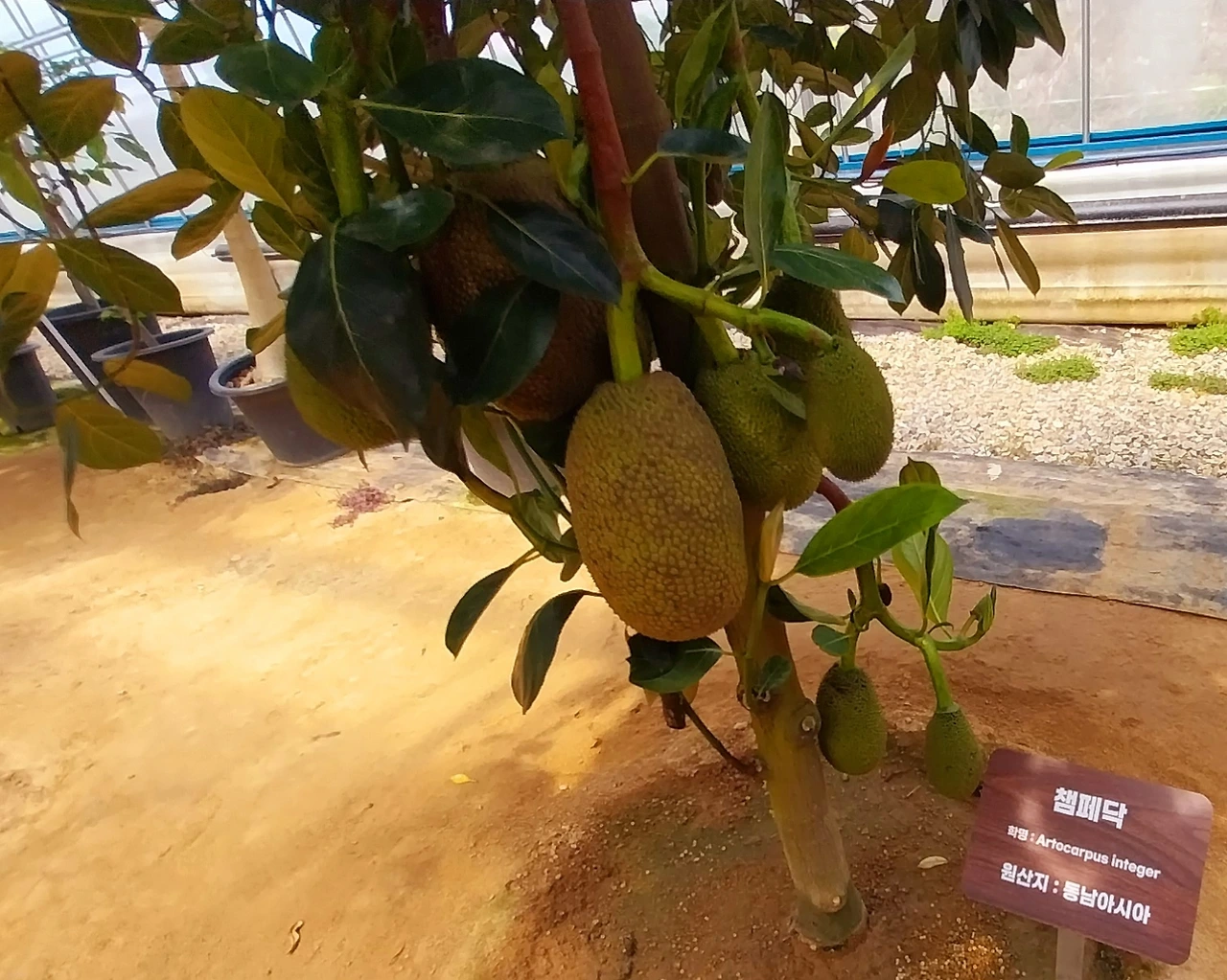 또 용과나무는 지지대를 기고 있었고 쳄파닥?이라는 열매와 두리안인가? 엄청 큰 열매도 달려있었다
