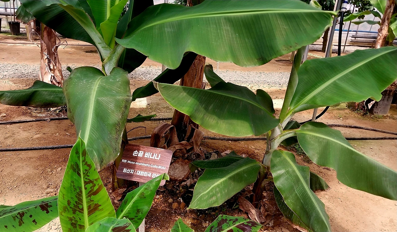 그는 종자개량으로 대한민국 원산지인 손끝바나나 나무를 보여 주며 이 바나나가 작은 키에 속하며 열매도 작게 열리는데