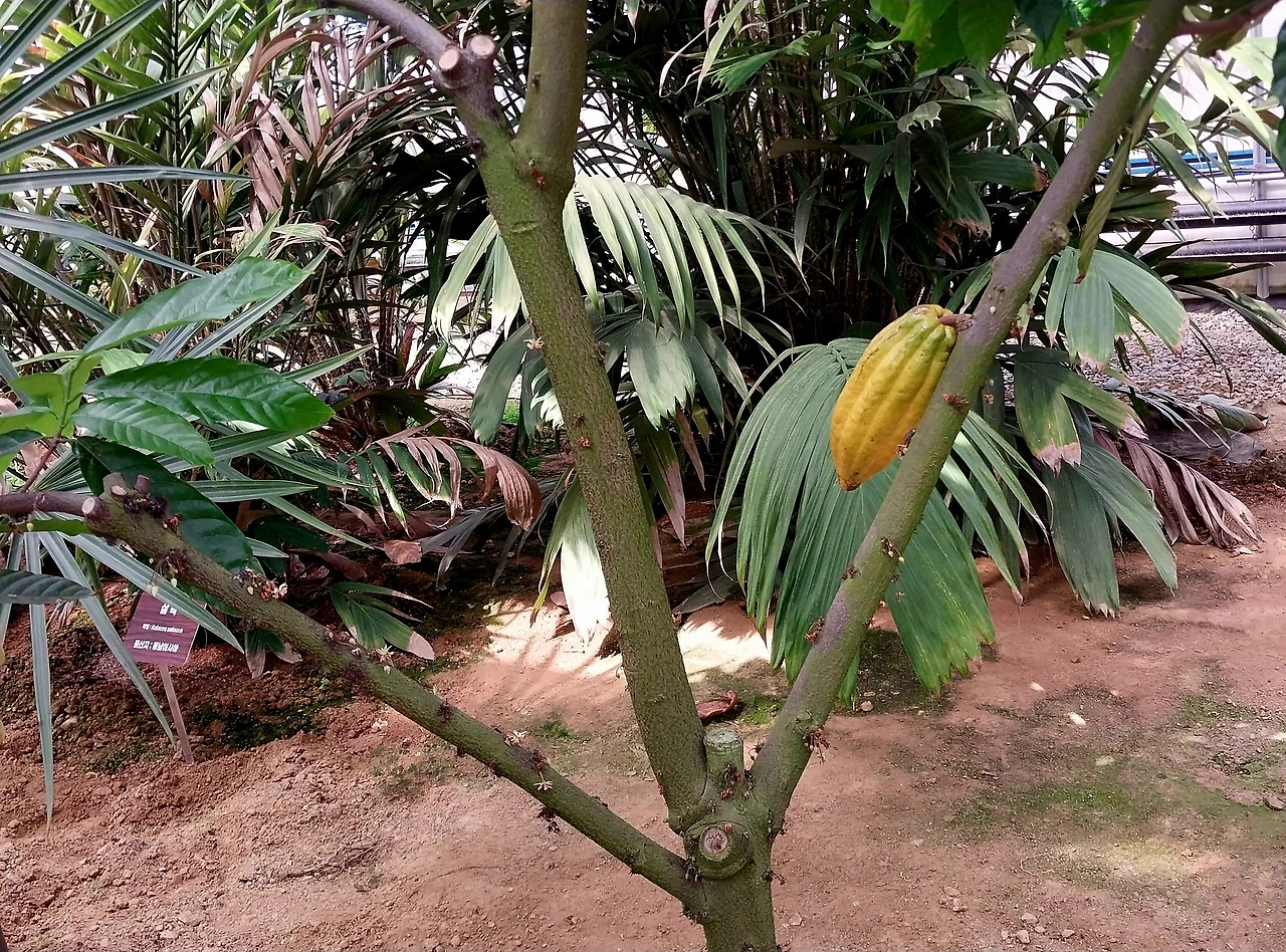 카카오가 열려있고, 바나나도 주렁주렁이며 붉은빛 아주 커다란 바나나 꽃이 피었는데 이 꽃 속에서 바나나가 열매로 나온단다