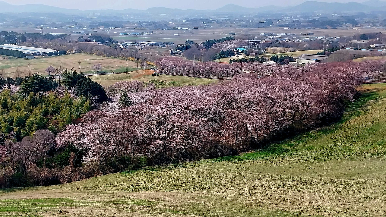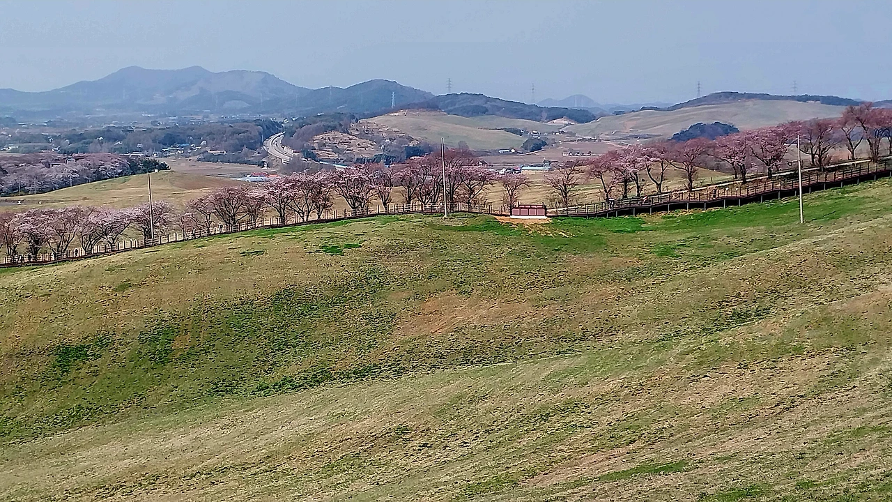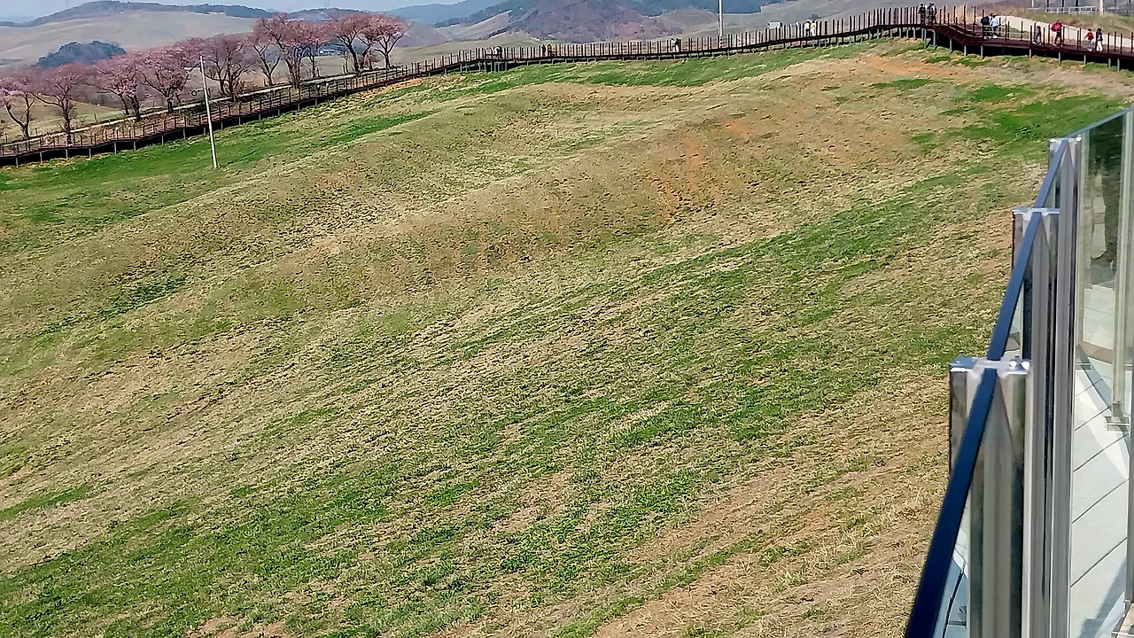 초원에 소들이 보이지 않아 아쉬웠지만 주변 가장자리에 벚꽃이 장관을 이루며 관람객을 반기고 있었다