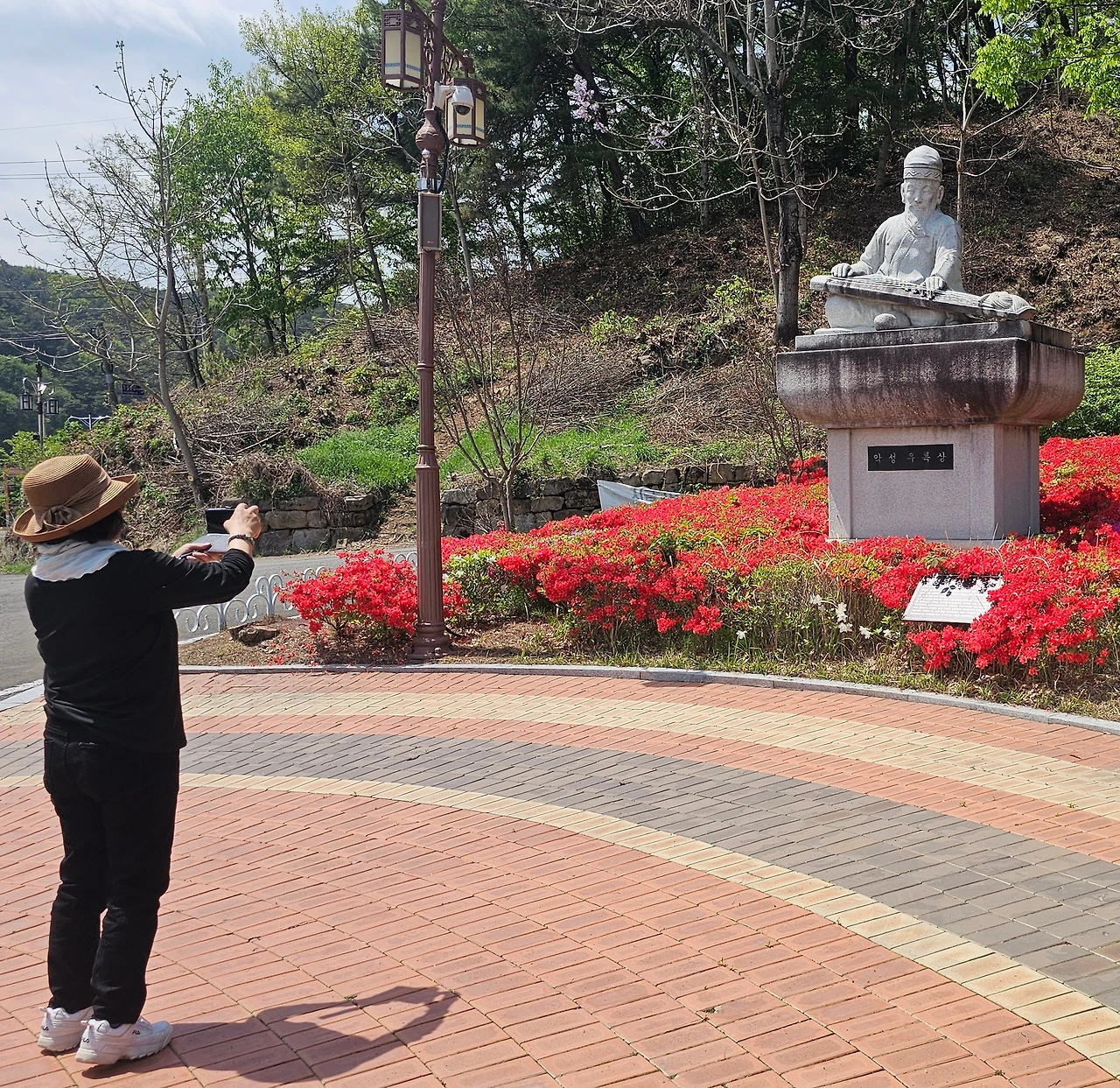 입구에 가야금 연주를 하고 있는 우륵상 있었고 마당에는 예쁜 꽃들이 방문객을 반겨 주었다