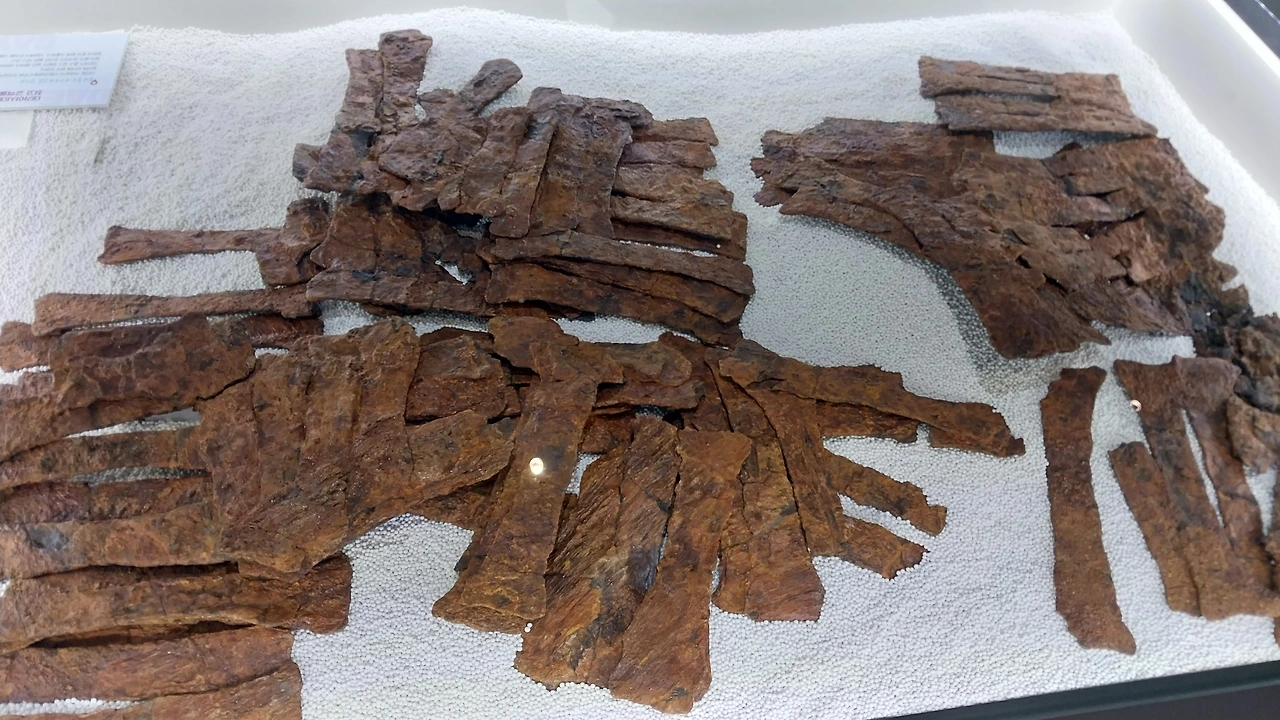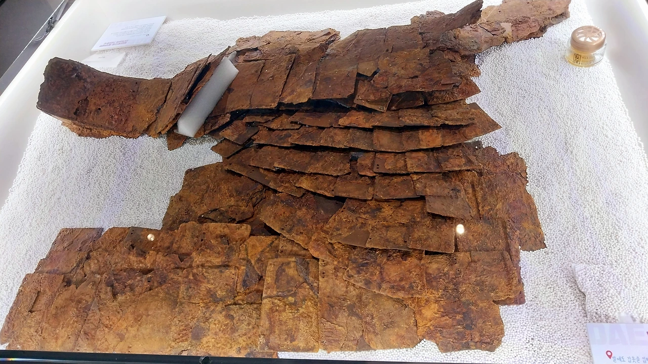 지산동 75호의 으뜸덧널에서 나온 것으로 사람의 것보다 훨씬 큰 철판으로 만들어졌으며 가죽으로 연결하였다