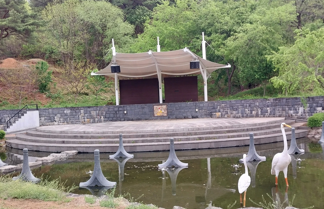 안쪽으로 계속 들어가다 보니 어디선가 폭포소리가 들려 가 보니 지형구조를 이용 설치된 인공폭포와 그 옆에 멋진 무대가 어서 오라 손짓한다