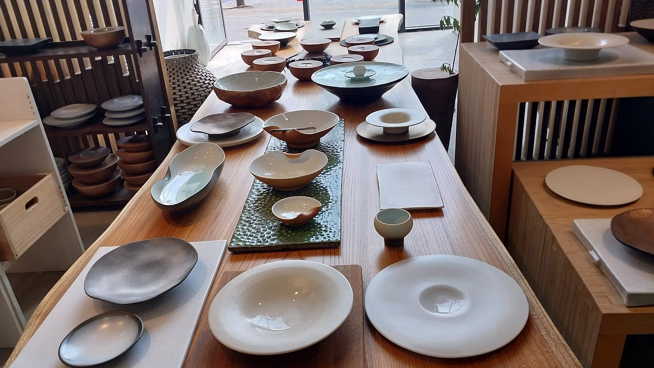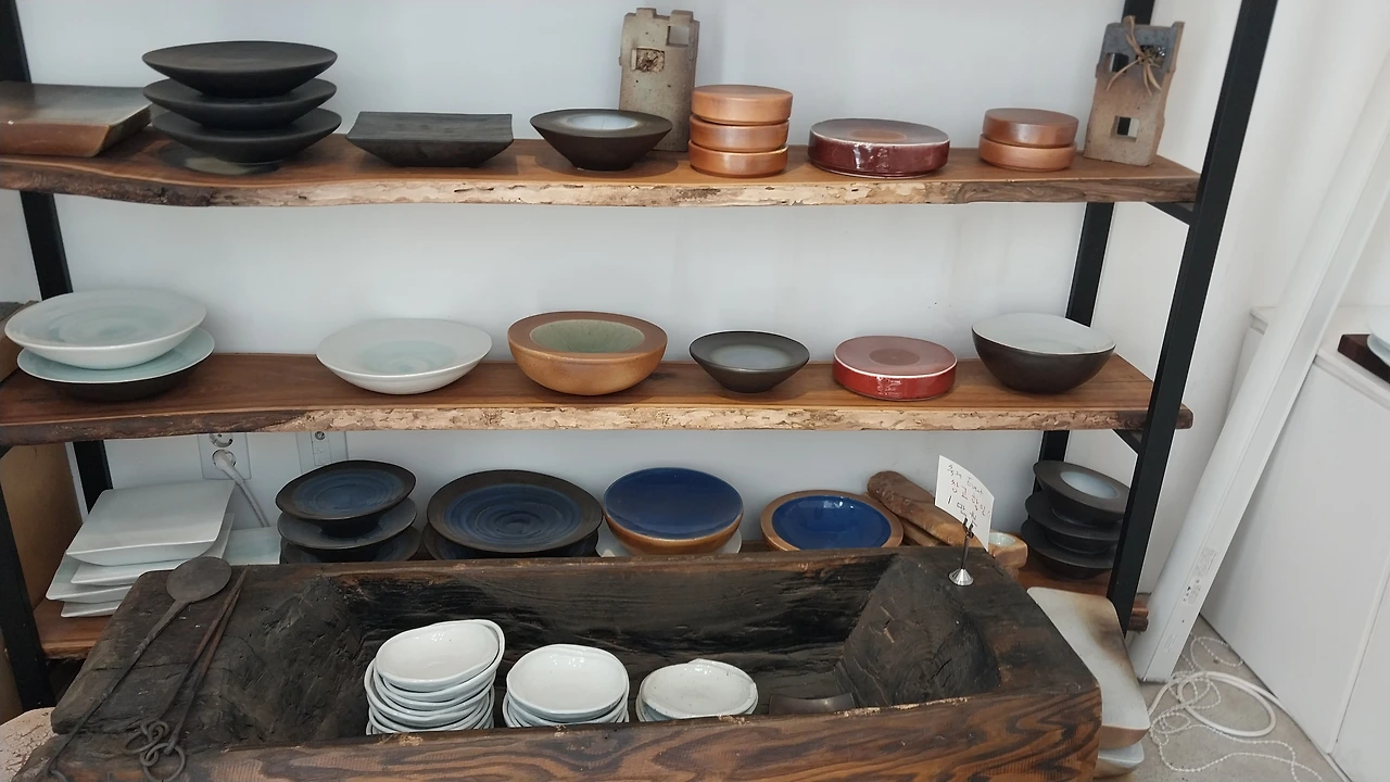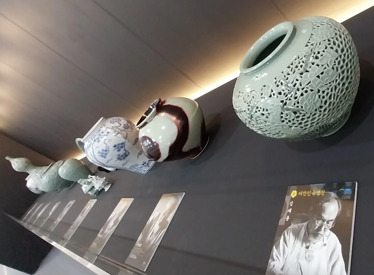 또 다른 쪽에는 이천 명장님들의 작품도 전시되어 있었는데 도예공방마다 무언가 다른 특색이 있고 도자기마다 명장님들의 혼이 깃들어 있는 듯 아름다웠으며 전시관을 돌아보고 도자기에 푹 빠지는 자신을 들여다보며 빙그레 미소가 담겼다