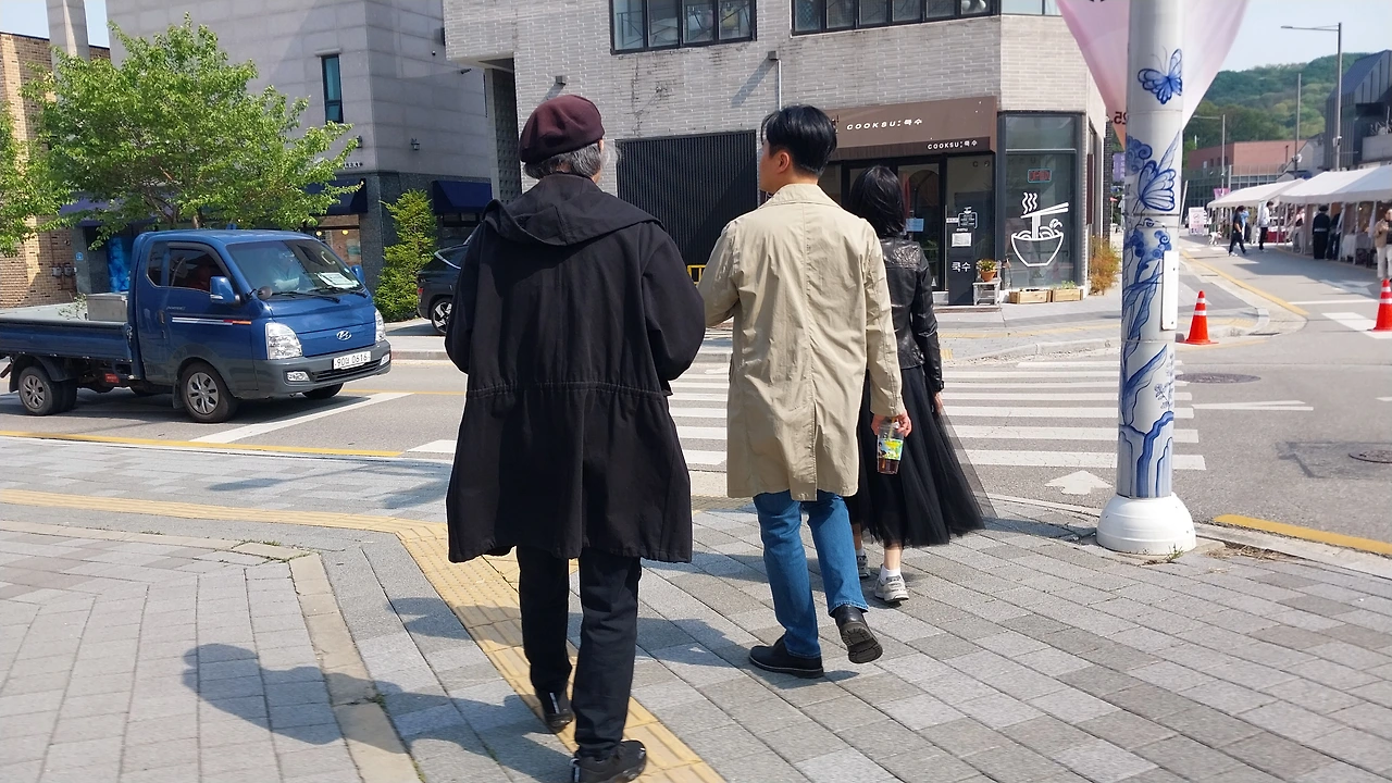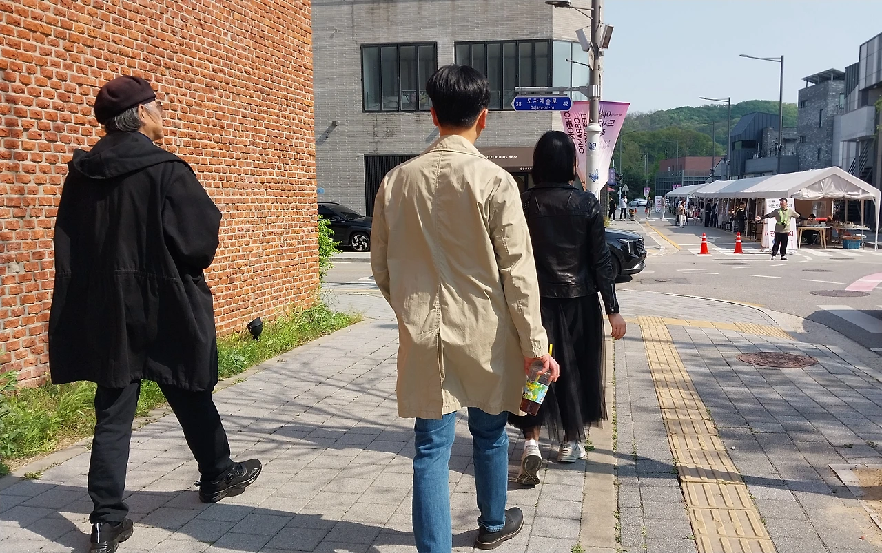 거리를 옮겨 다니며 전시장이 있어 앞에서 또 다른 전시장을 찾아 걷고 있는 며느리와 아들 그리고 짝꿍의 뒷모습을 보며 미소를 짓는다