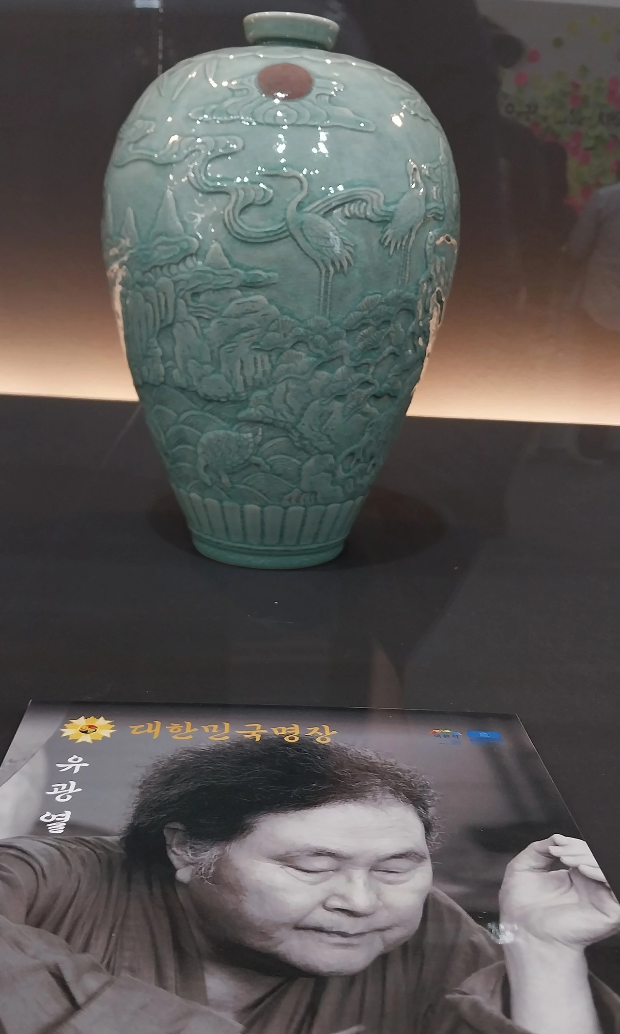 천천히 감상하는데 깜짝? 저번 사기막골 도자 전시장에 갔을 때 구매했던 멋진 백자를 만드신 백산도예 권영배 명장님의 사진과 그리고 작품도 있었다