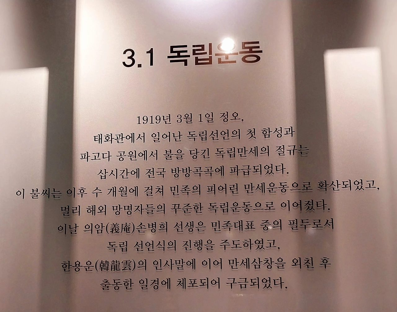 의암 손병희 선생은 민족대표 33인의 한분으로 3.1 운동 때 파고다 공원에서 독립선언서를 낭독했다