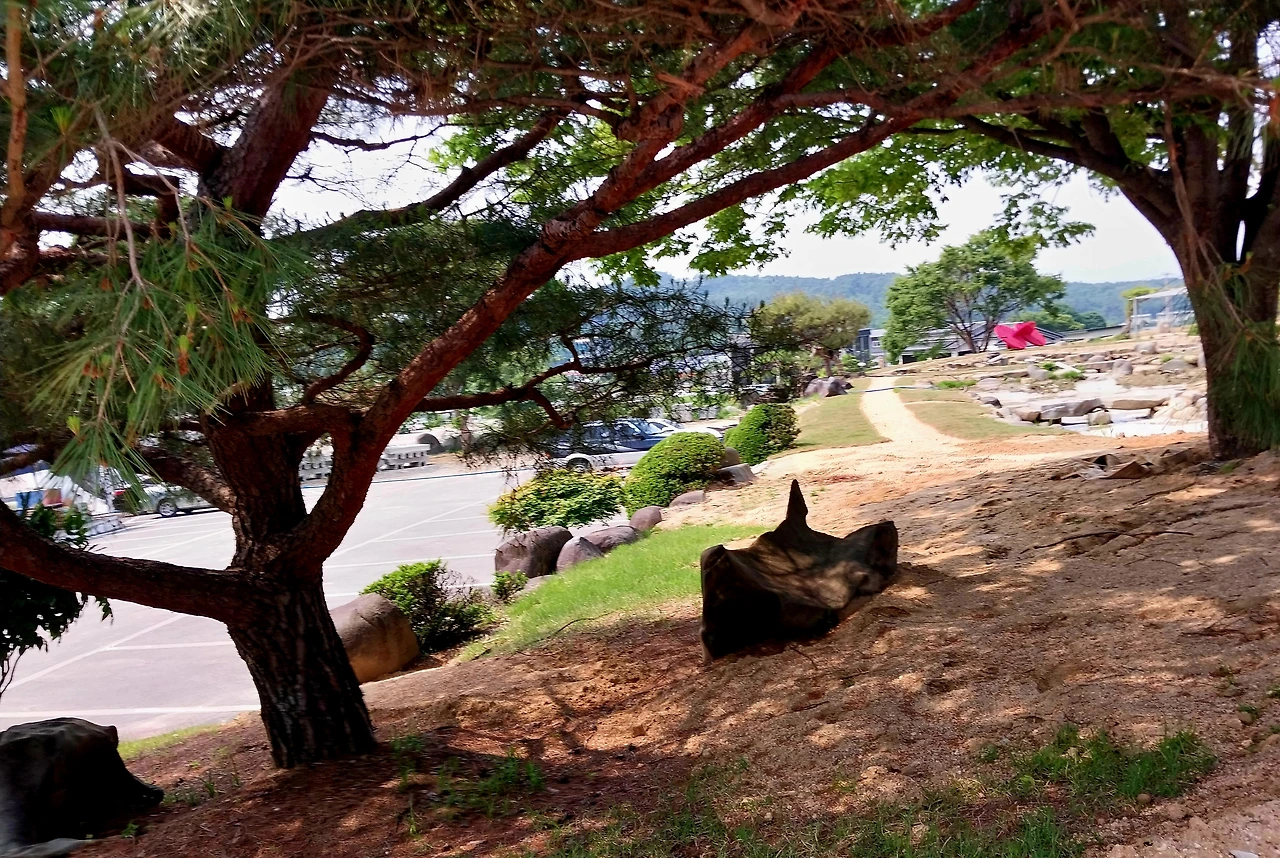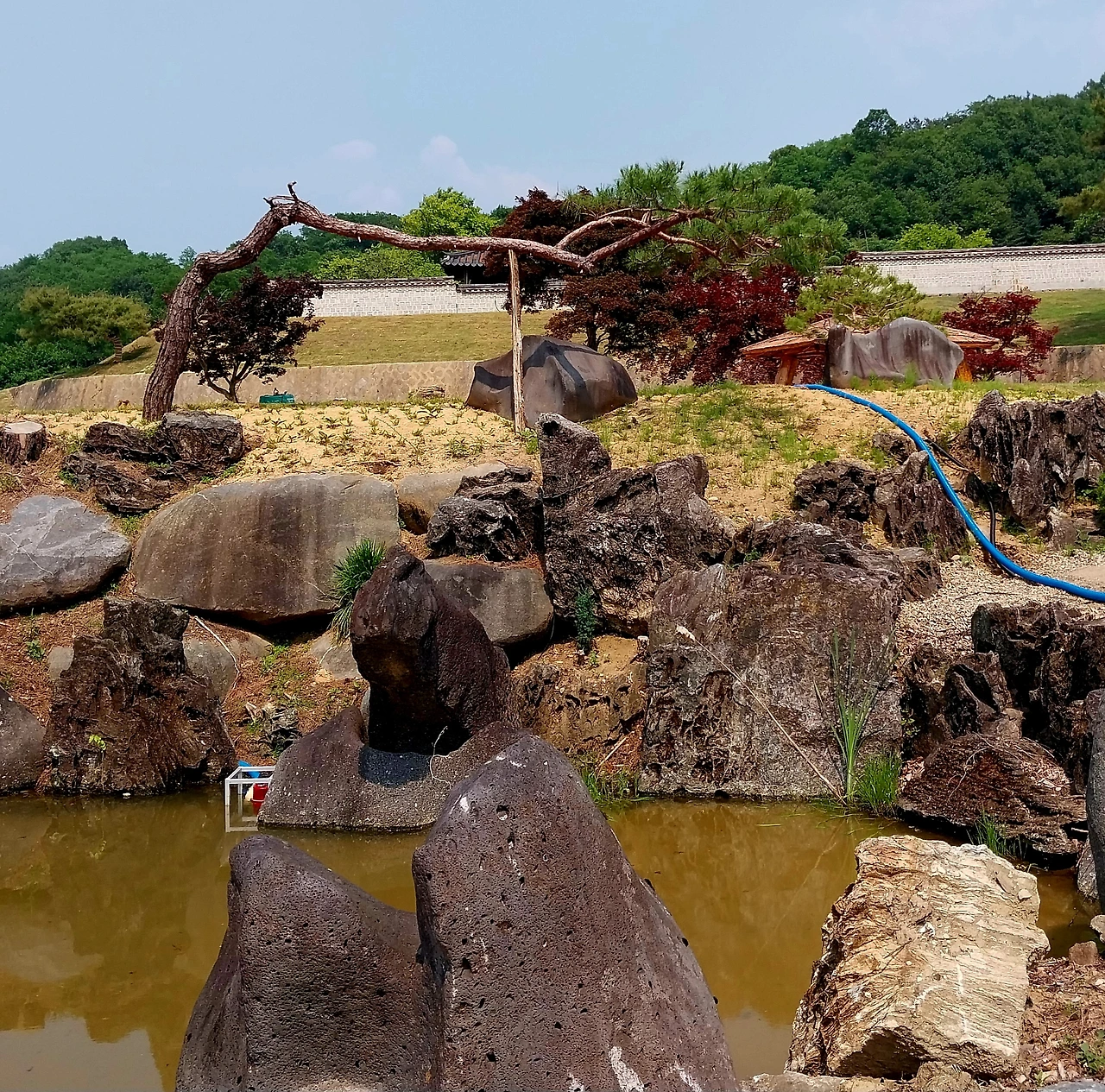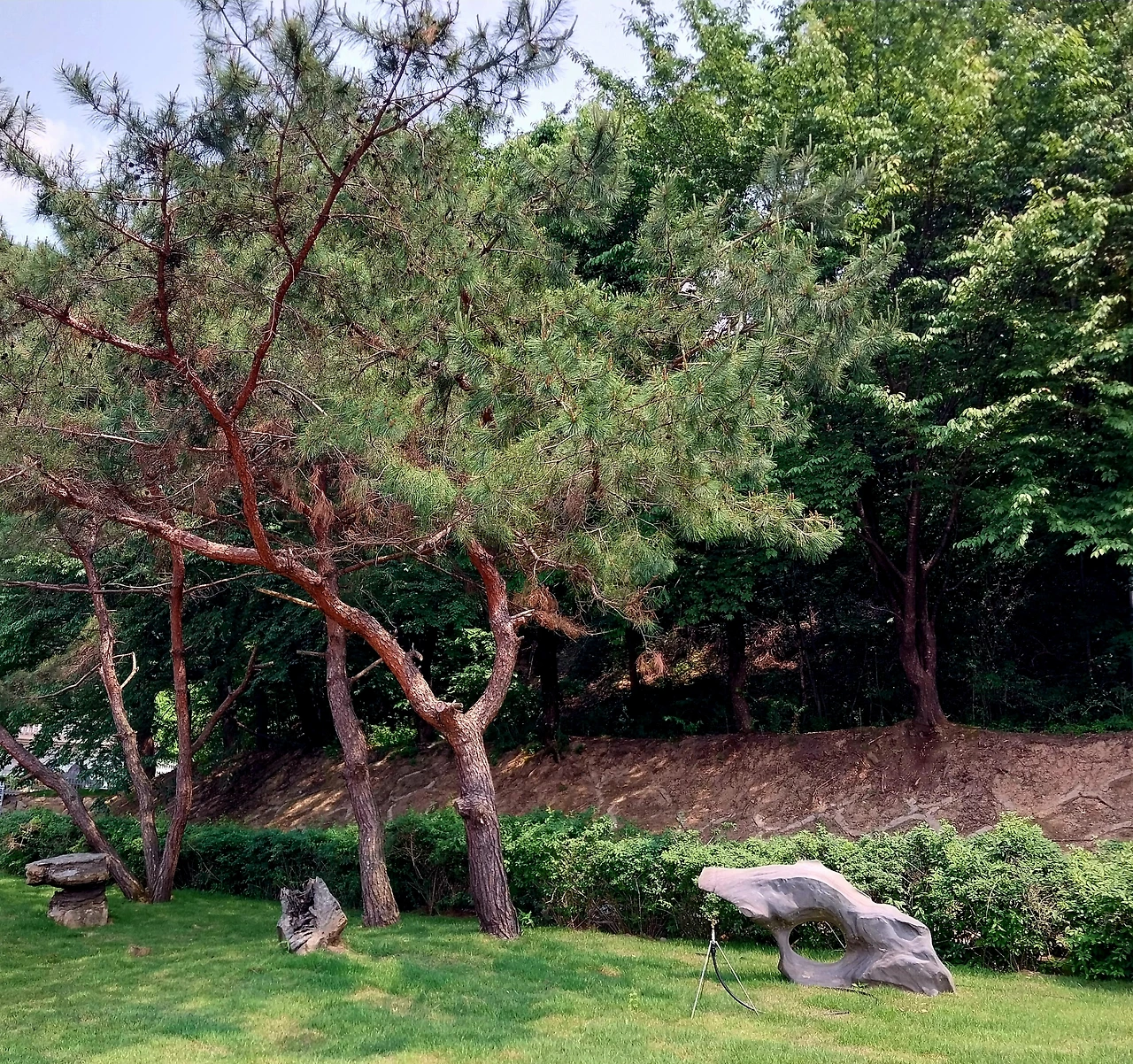 여기저기 정성 들인 멋쟁이 나무와 바닥에 누운 돌? 아님 바위?