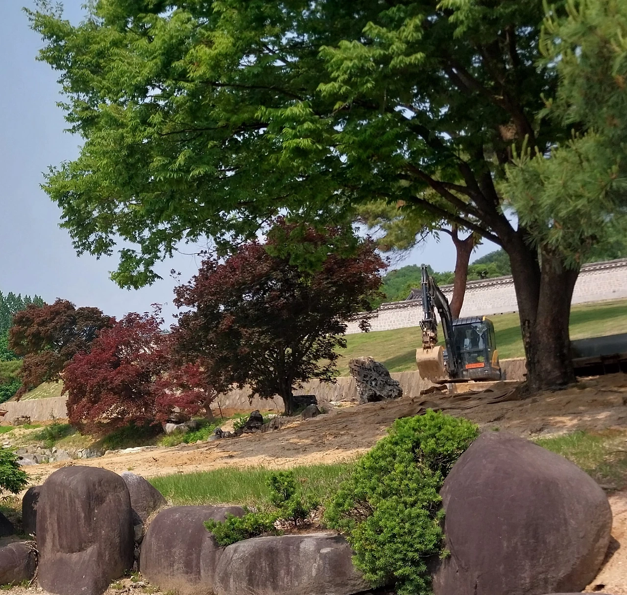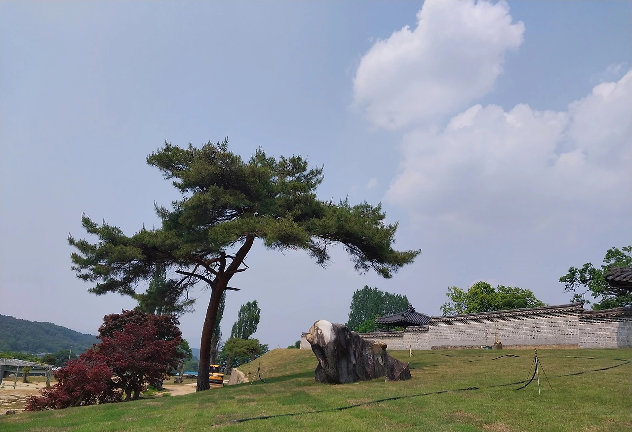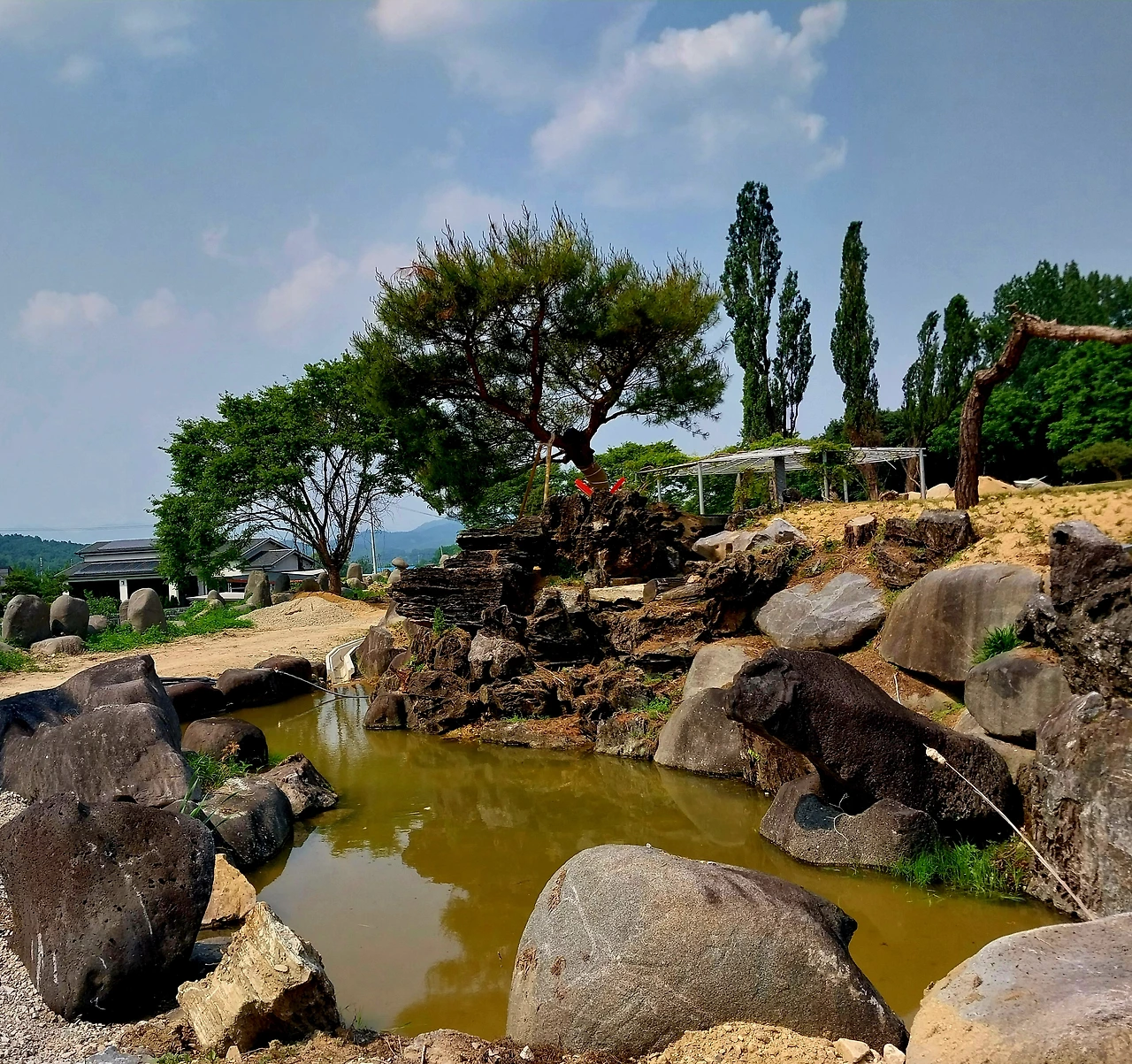 여기저기 정성 들인 멋쟁이 나무와 바닥에 누운 돌? 아님 바위?