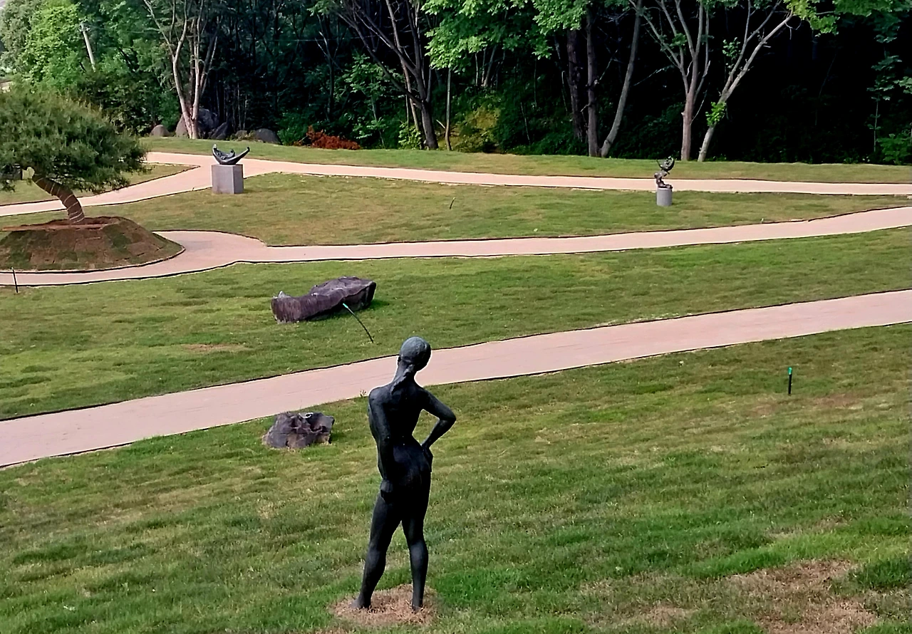 운보미술관 뒤쪽의 조각공원의 작품들을 앞쪽으로 옮겨 재배치하는 작업을 하고 있다고 했다