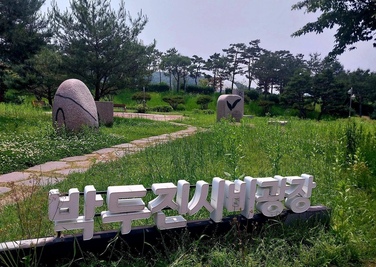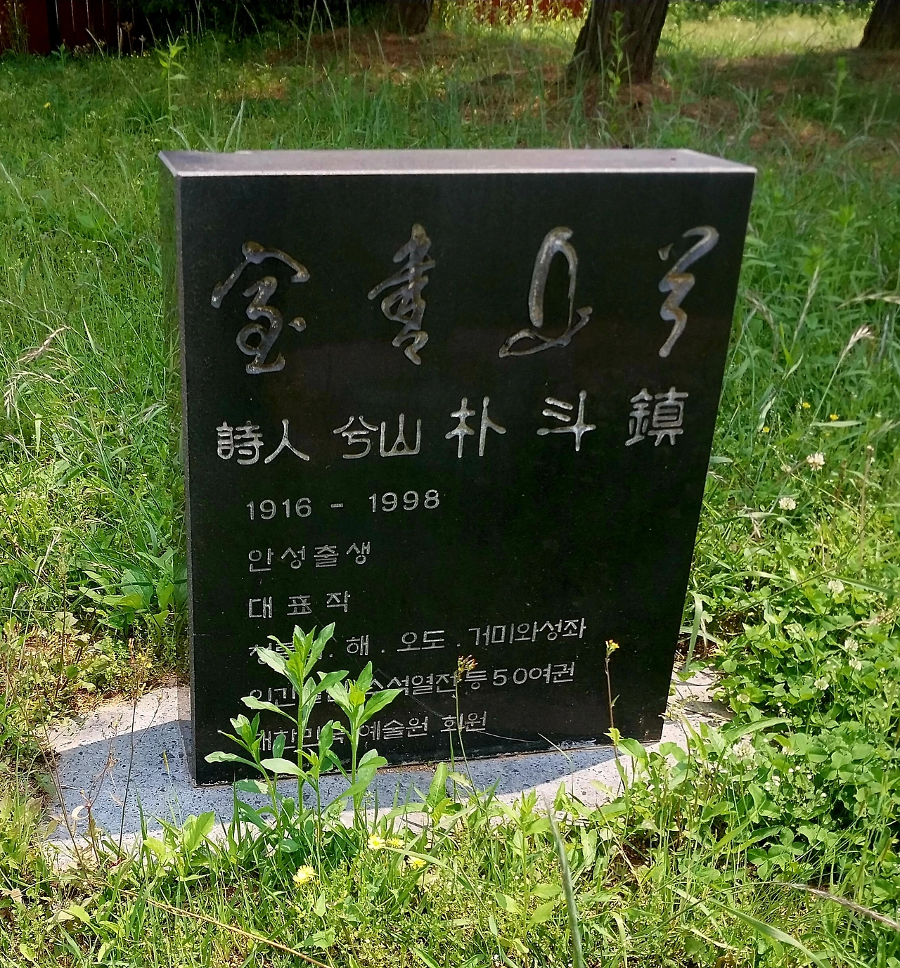 초록빛 찬란한 박두진 시비 광장에서