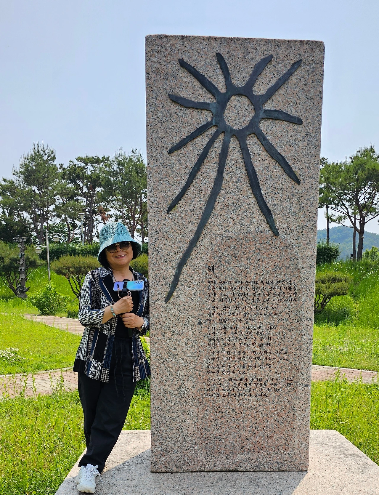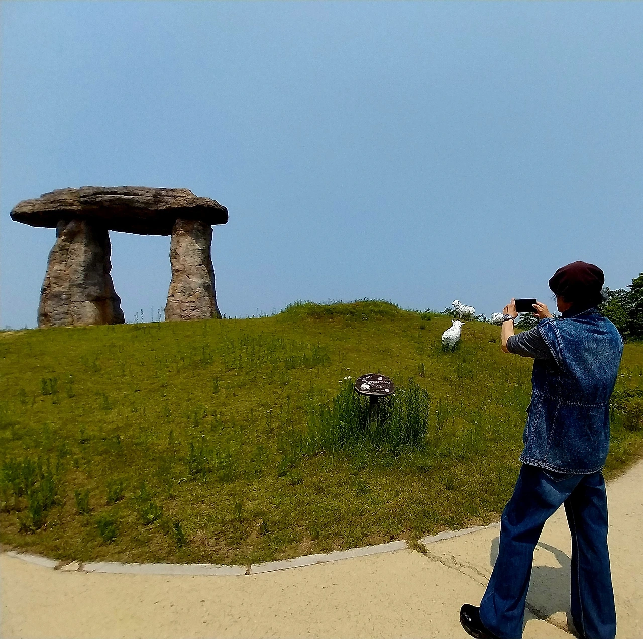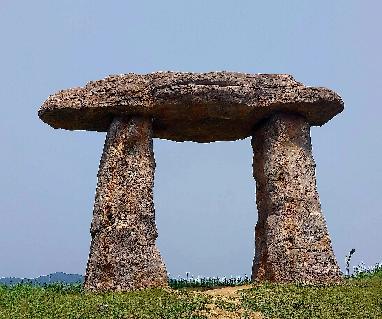 걷다 보니 시비광장 중앙 언덕에 서서 내려다보며 호령하고 있는 것 같은 고대 거석문화 시기의 고인돌 같은 작품에 발길이 끌려 가까이 가보니 영국 솔즈베리 평원에 자리한 고대거석 기념물 스톤헨지라고 했다