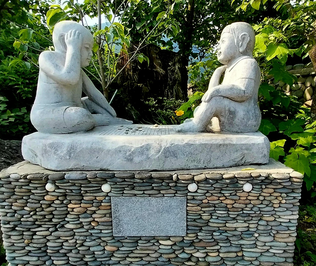 안으로 들여가자 코스가 다시 나타났고 아기자기 예쁜 동상과 쉼터도 나타났다
