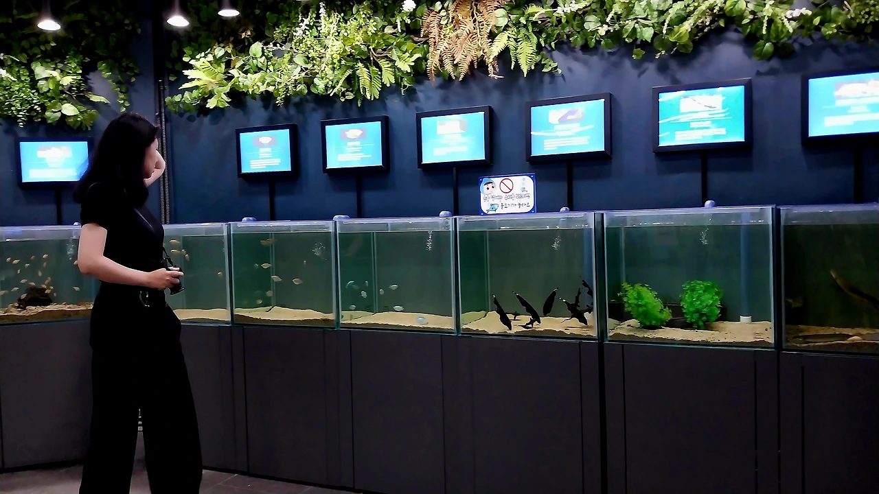 작은 사각틀 안의 어류는 특이함을 찾았었다