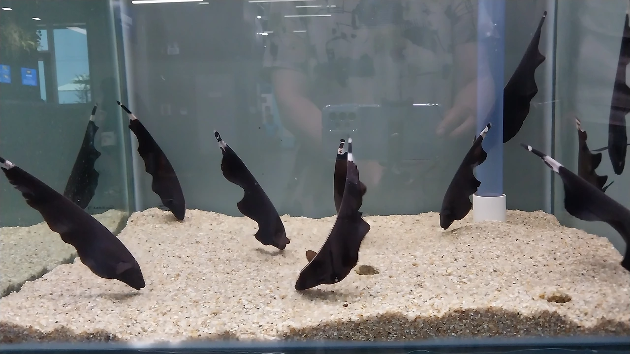 쟤는 길이가 꽤 긴데 수족관이 너무 작아