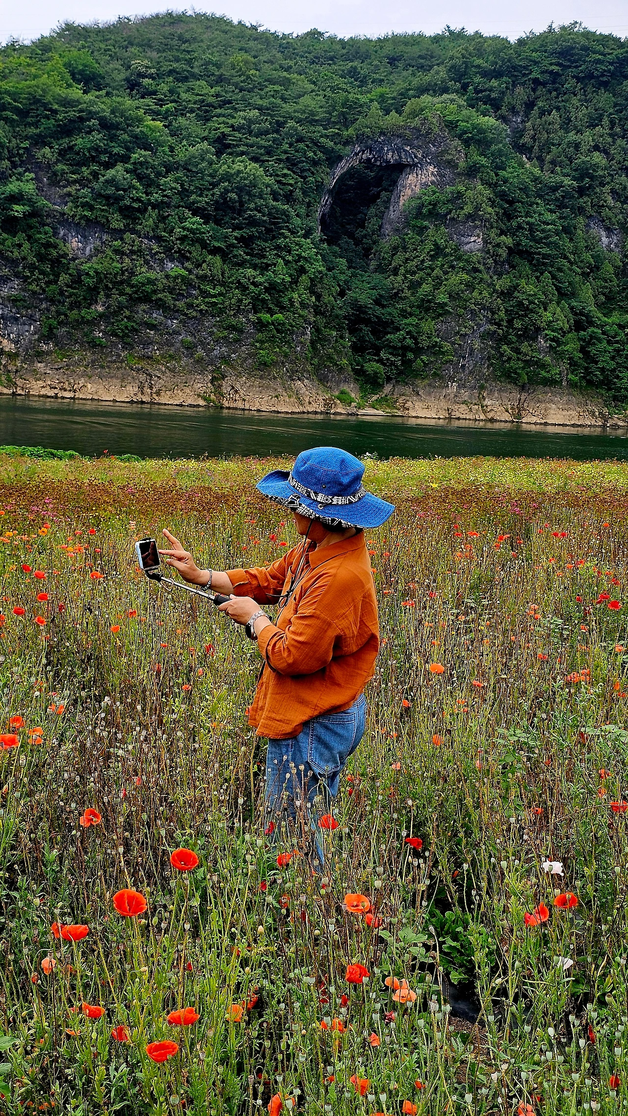 환호하며 한참을 달리다 보니 꽃이 보인다