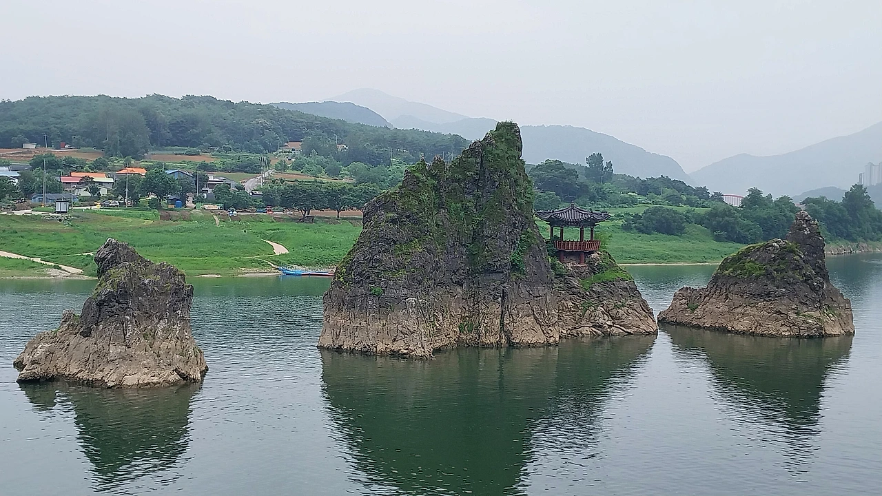 도담삼봉 앞에서는 아빠와 딸이, 엄마와 딸이, 그리고 셋이서 가족사진도 찍으며 강가의 산 위에서 내려다보고 있는 정자를 바라보며 옛 추억 얘기를 한다