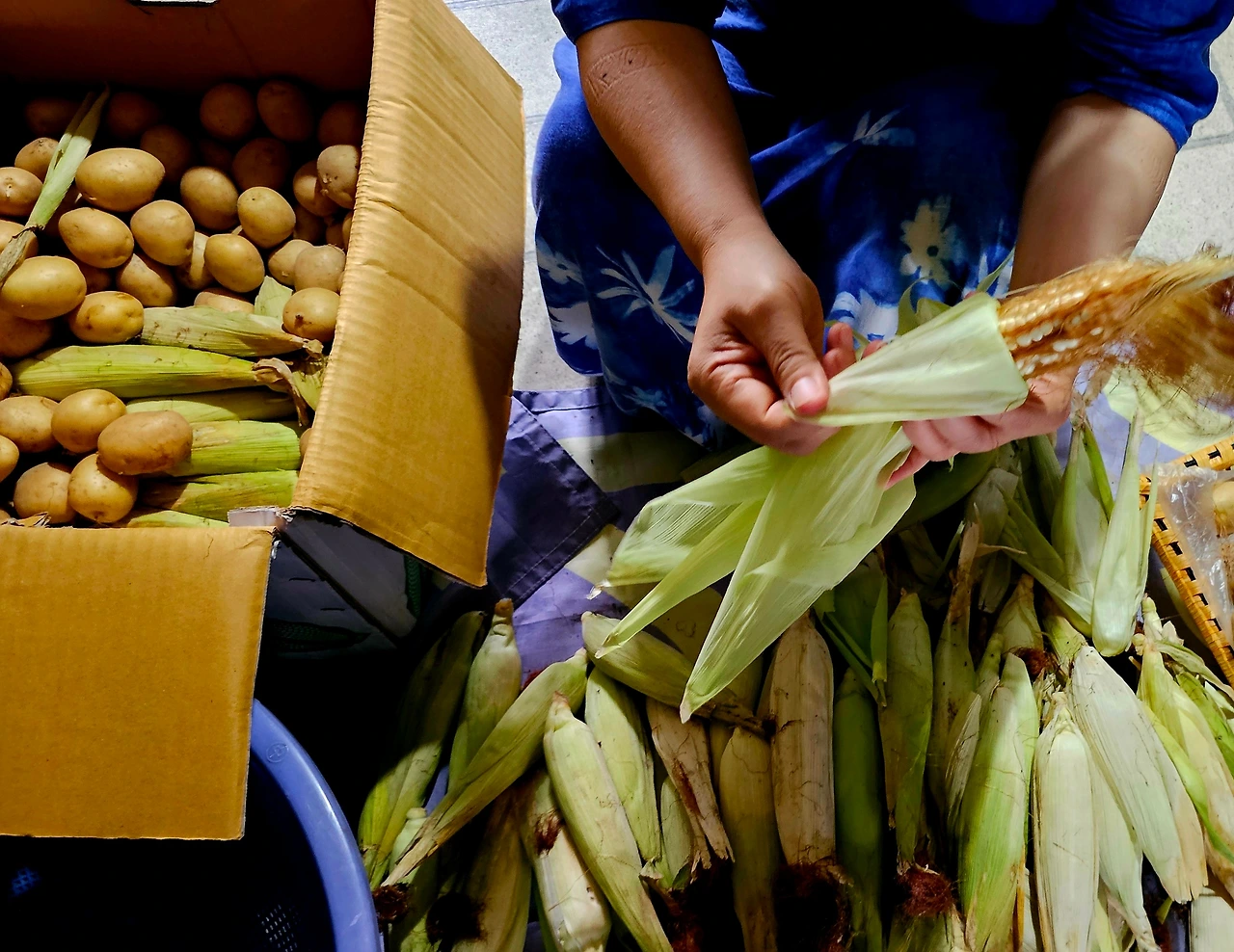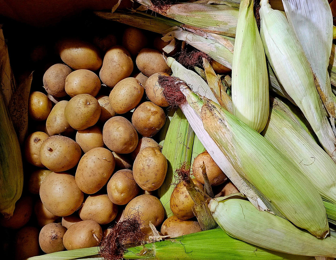 상자 속엔 감자와 옥수수가 가득