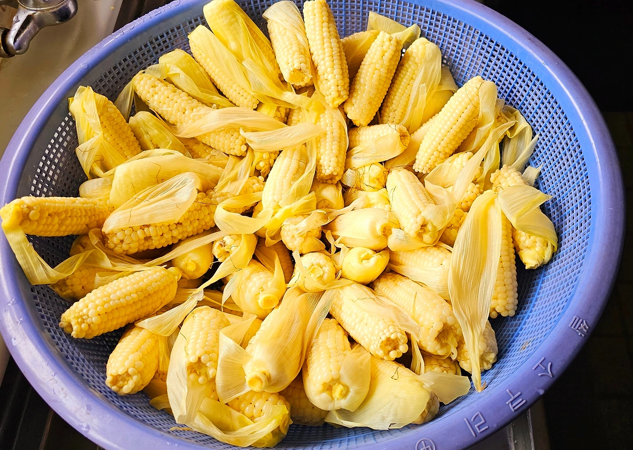 생각날 때 작은 봉지 하나씩 꺼내어 찜솥에서 충분히 다시 김 올려서 말랑해진 옥수수 먹어 봐야지