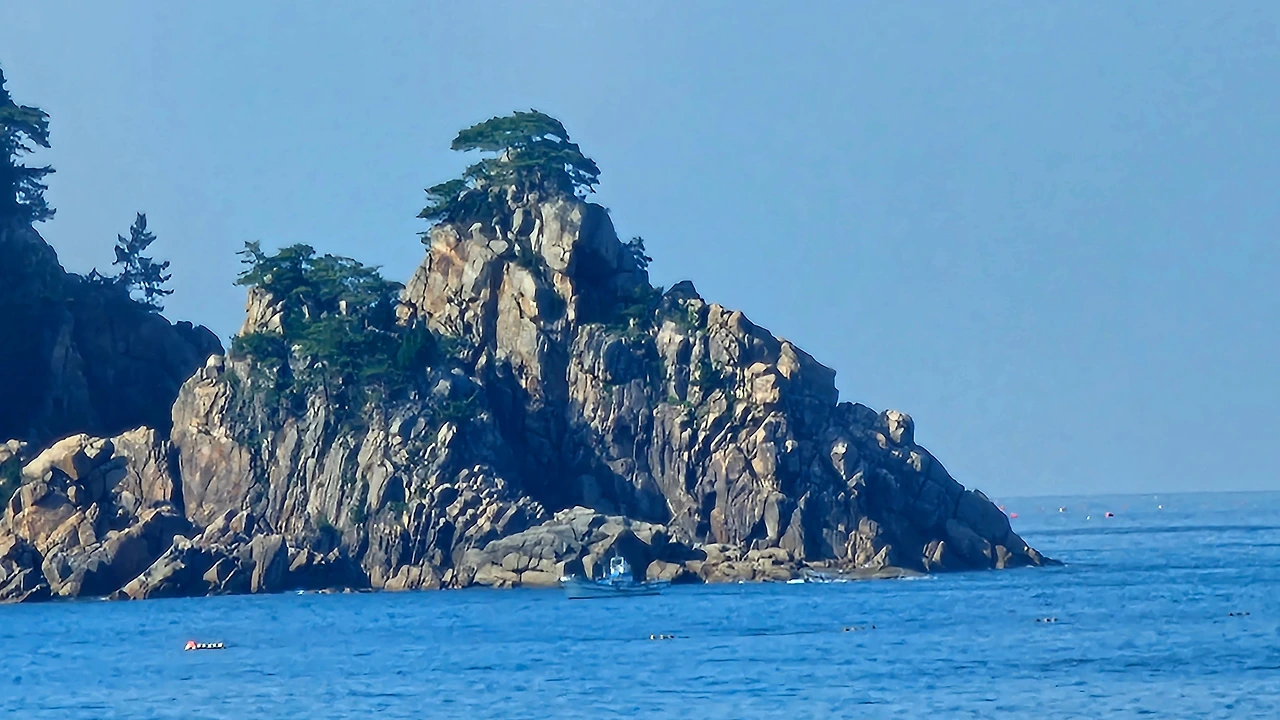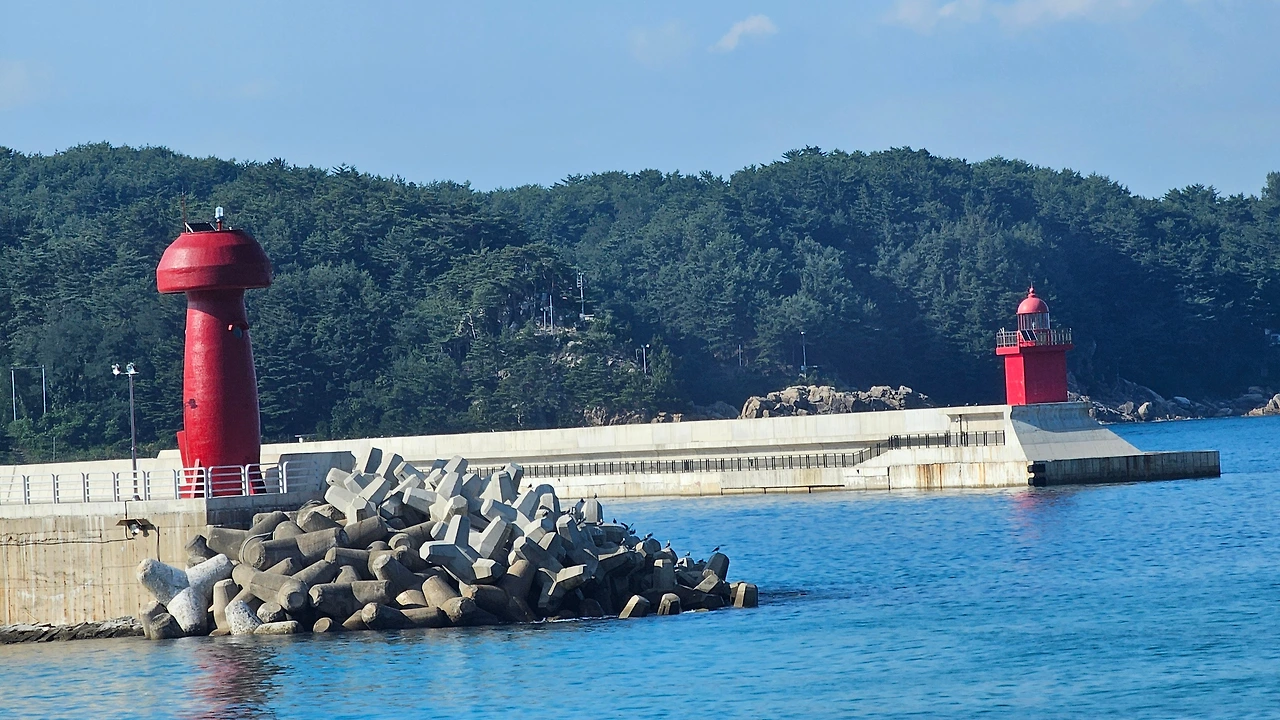 동해의 푸른 바다는 수평선을 그어놓고
