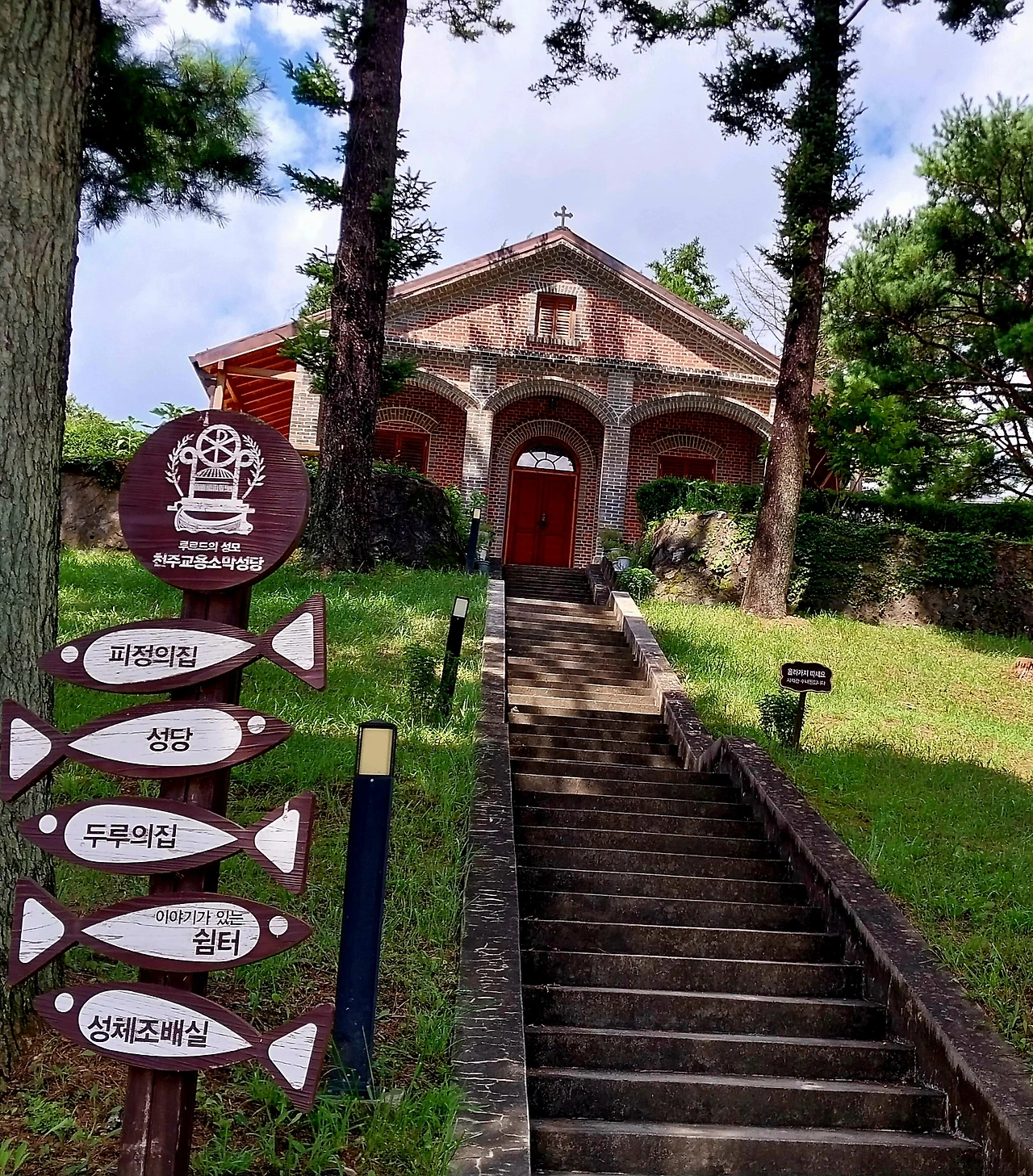 또 귀한 것은 우리나라 최초로 성경을 원어에서 우리말로 번역하신 선종완 신부님의 기념관이 있었는데 시간이 맞지 않은 관계로 문이 닫혀 들어가 볼 수 없어 안타까웠지만 원주교구에서 가장 아름다운 성당으로 여겨지는 용소막 성당을 만날 수 있는 행운의 시간이었다