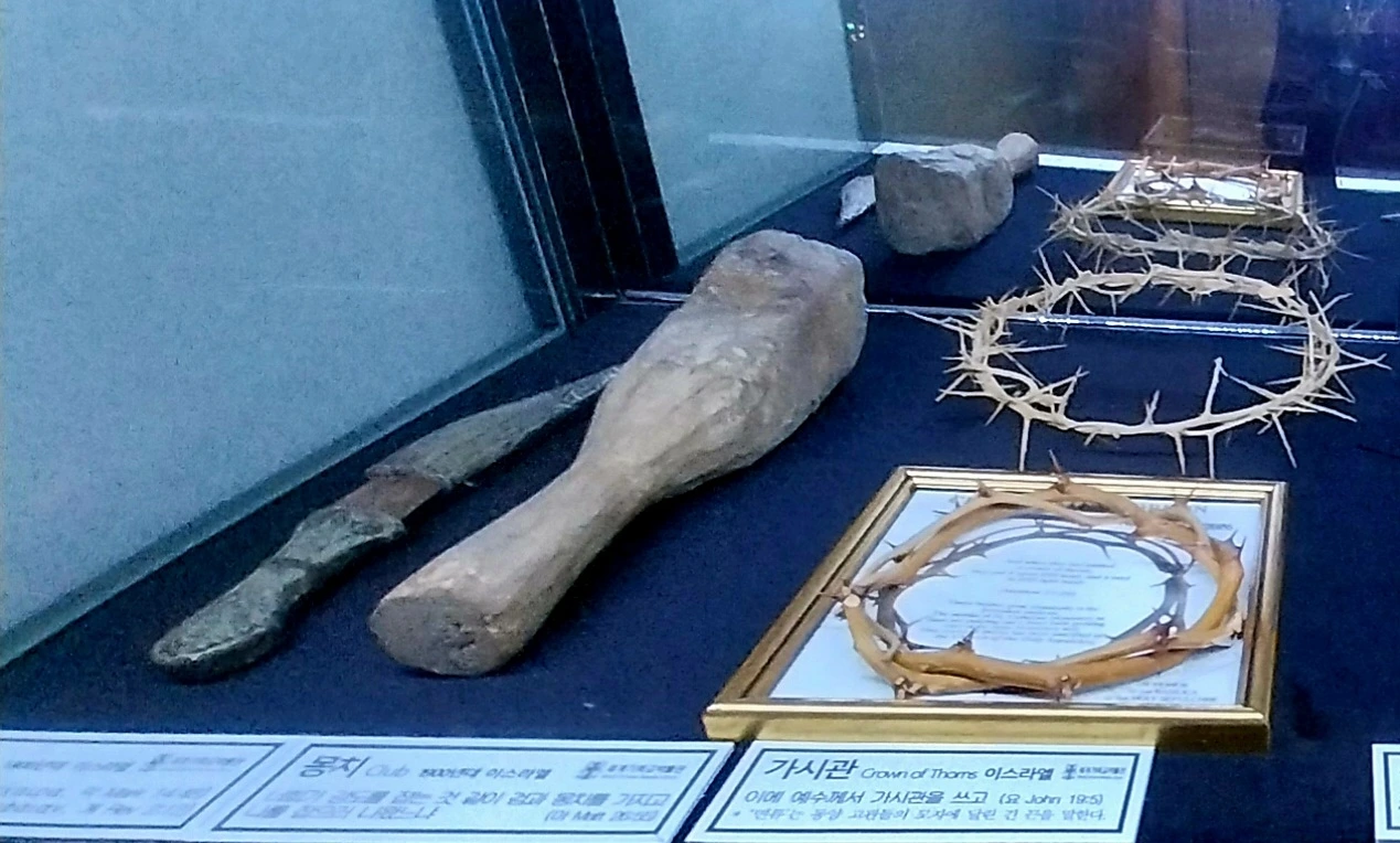또 예수님의 손과 발에 박았다는 로마시대 못과 한 군인이 예수님의 옆구리를 찔렀다는 로마시대의 창끝은 실지로 사용된 것이 아닐지라도 끔찍한 생각이 들었다