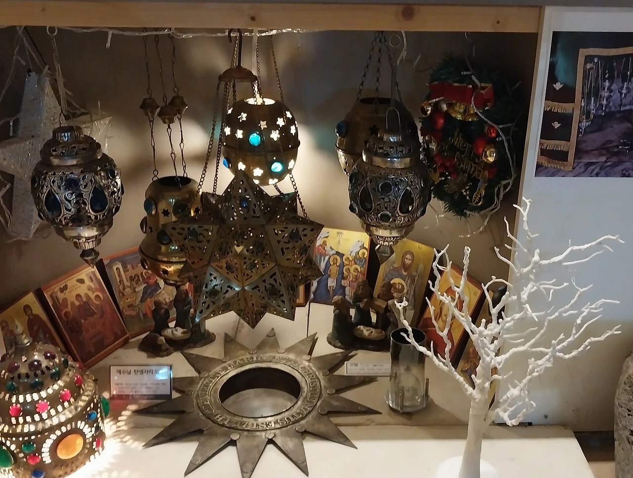 허리 숙여 들어온 성탄절교회 안에는 예수님 의 탄생과 십자가의 고난, 무덤등에 관해 전시되어 있었는데 마음이 숙연해졌다,