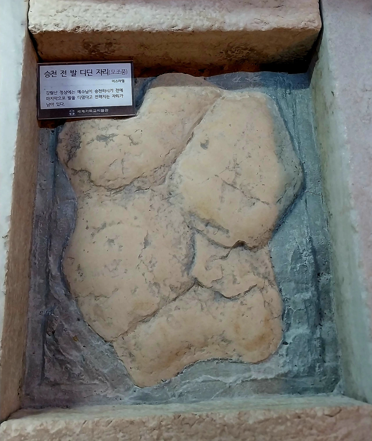 또 무덤과 관도 있었고 정말? 이런 흔적들이 남아 있단 것인가? 예수님이 부활 승천 할 때 마지막으로 발을 디뎠다는 자리의 모형이 만들어져 있었다