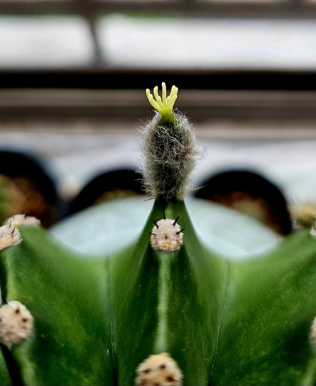 털북숭이 꽃봉오리 올려놓고는