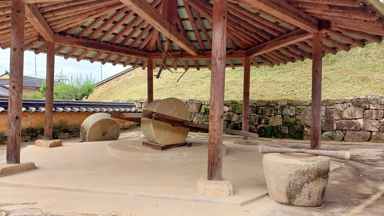 놀라 웠던것은 장독대 앞에 석빙고가 있었고 엄청난 크기의 뒤주 두 개가 나란하게 있었고 개인의 집에 있을 것 같지 않은 엄청난 크기의 연자방앗간에 두 눈이 휘둥그레졌다
