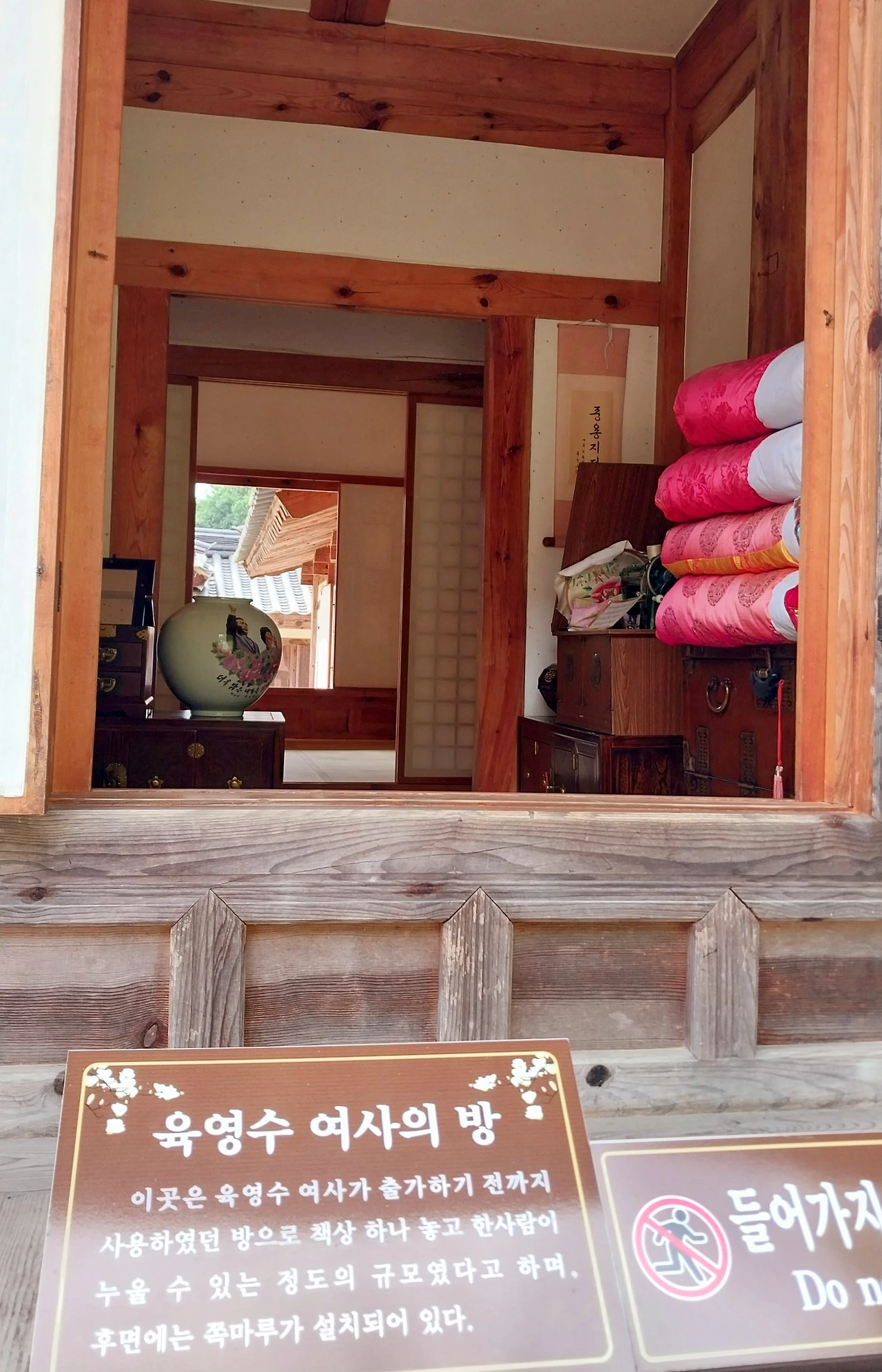 둘러보다 들여다본 육여사의 방은 옛날 방 크기의 아담한 뒤뜰로 나오는 방이었는데 결혼 전까지 그 방에서 살았다고 했다