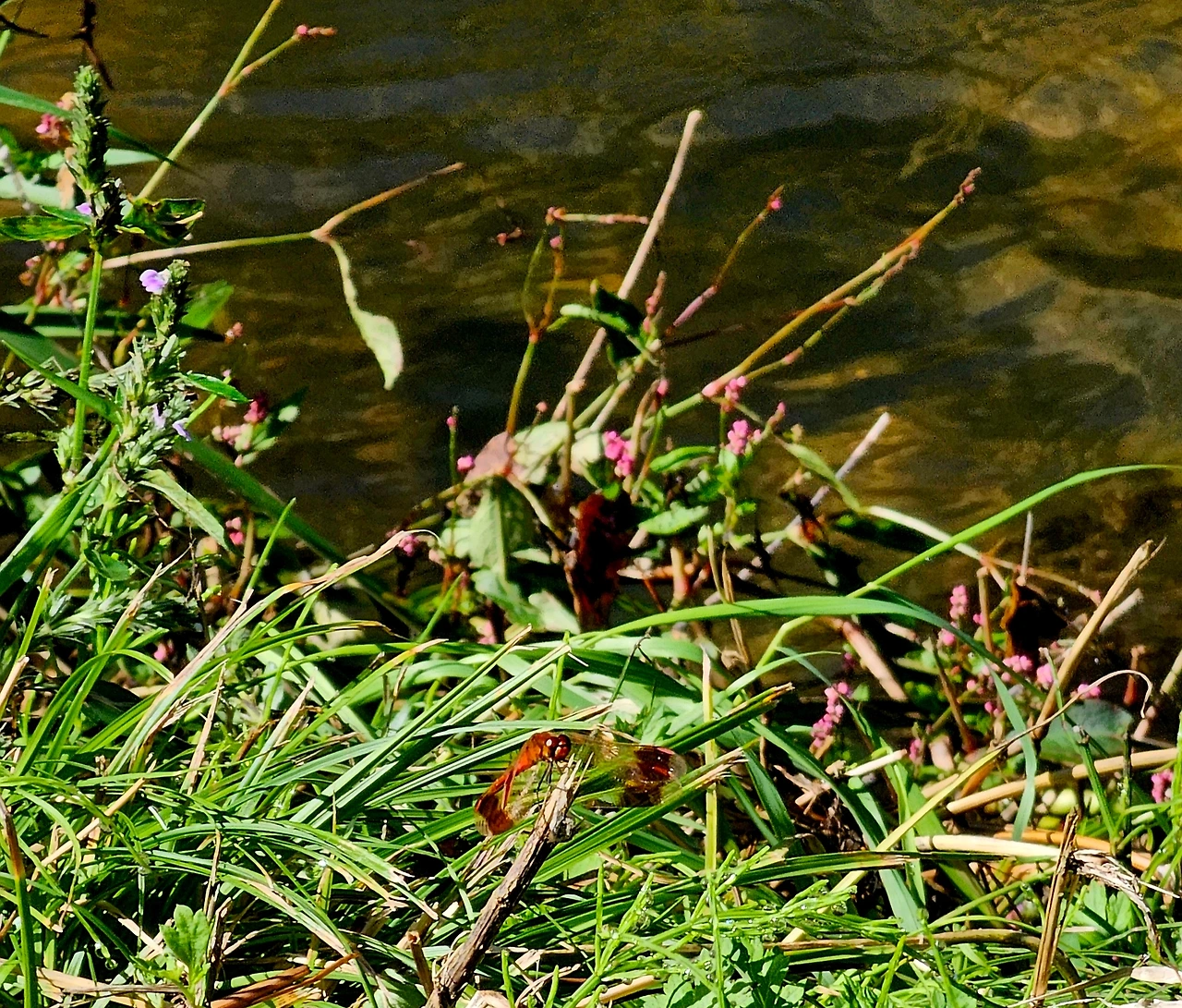 개천가 풀 끝에 빨간 고추잠자리가 살랑이고