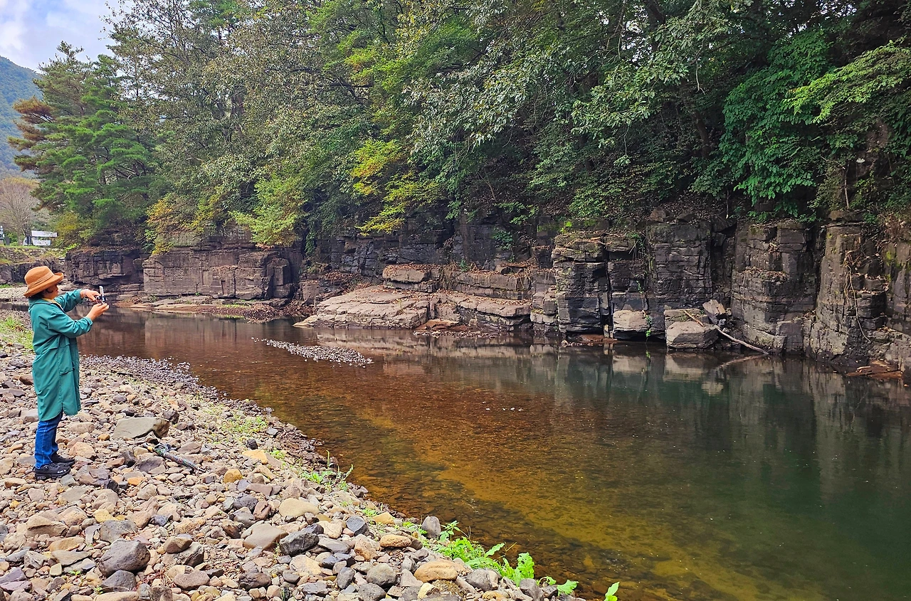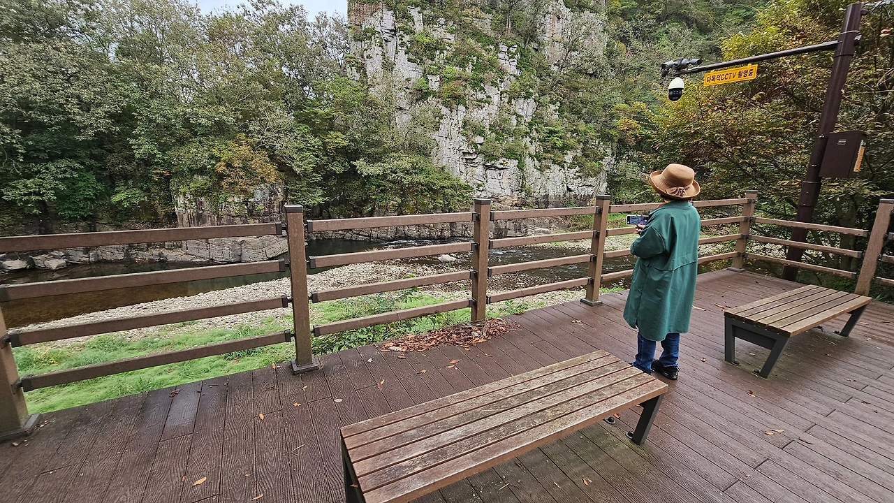 길 위로 올라와 암각화 앞에 집청정이라는 정자가 있어 살펴보니 긴 안내글 중 눈에 들어온 내용은 이곳에 시인 묵객들이 모여 반구대의 그림을 그리고 시를 쓰며 소통의 장이 되었다는 것이었는데 이곳의 빼어난 풍경은 시인 묵객들의 발길을 부르고도 남을 것 같았다
