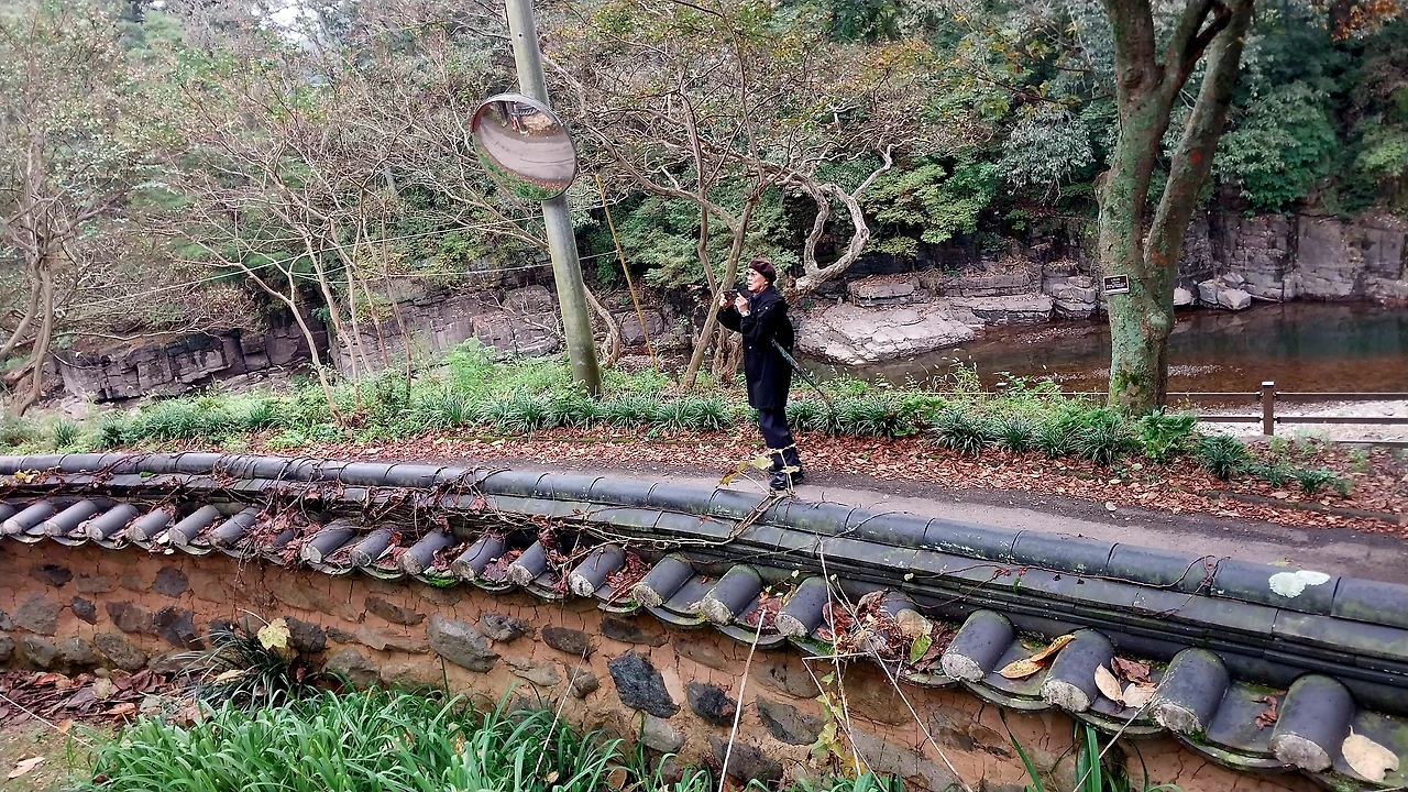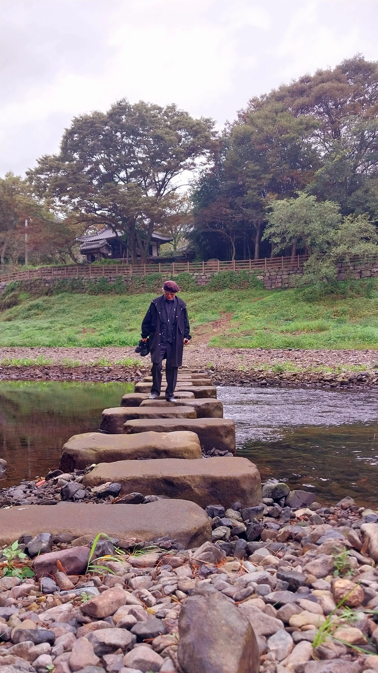 무심코 징검다리에 발을 올린 순가 미끄러워 앗! 미끄덩ㅡ돌 위에 미끄러져버렸지만 손에 든 폰을 지켜야 한다는 무의식이 발동에 손을 들고 무릎을 내주었는데 다행히 크게 다치지 않았고 돌을 만져보니 이끼가 끼어 얼음보다