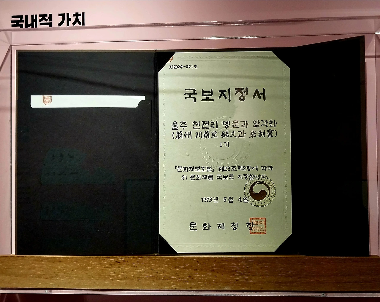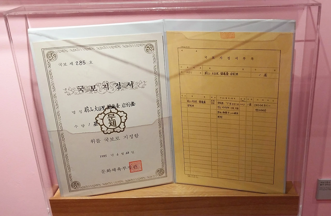 박물관 전시물 중 반구대 암각화가 1995년 6월 국보지정이 되었다는 증서를 보다가