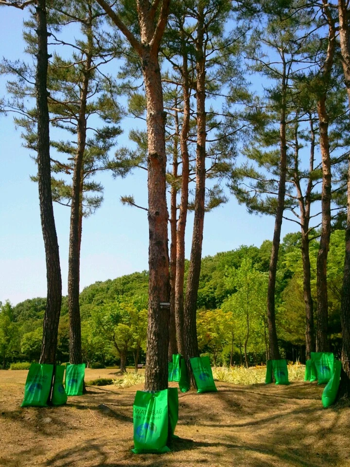 소나무 그루마다 물먹기 시합