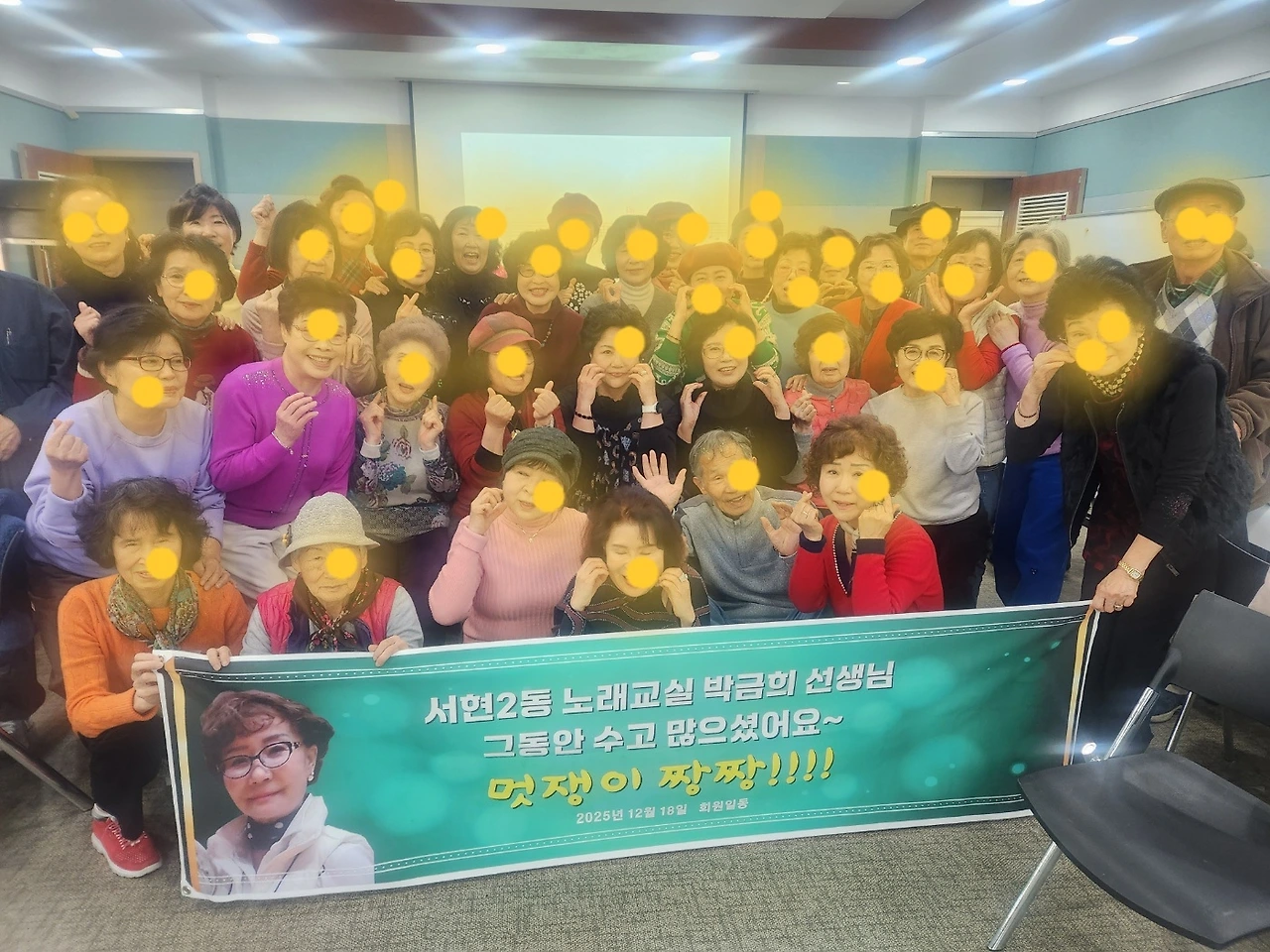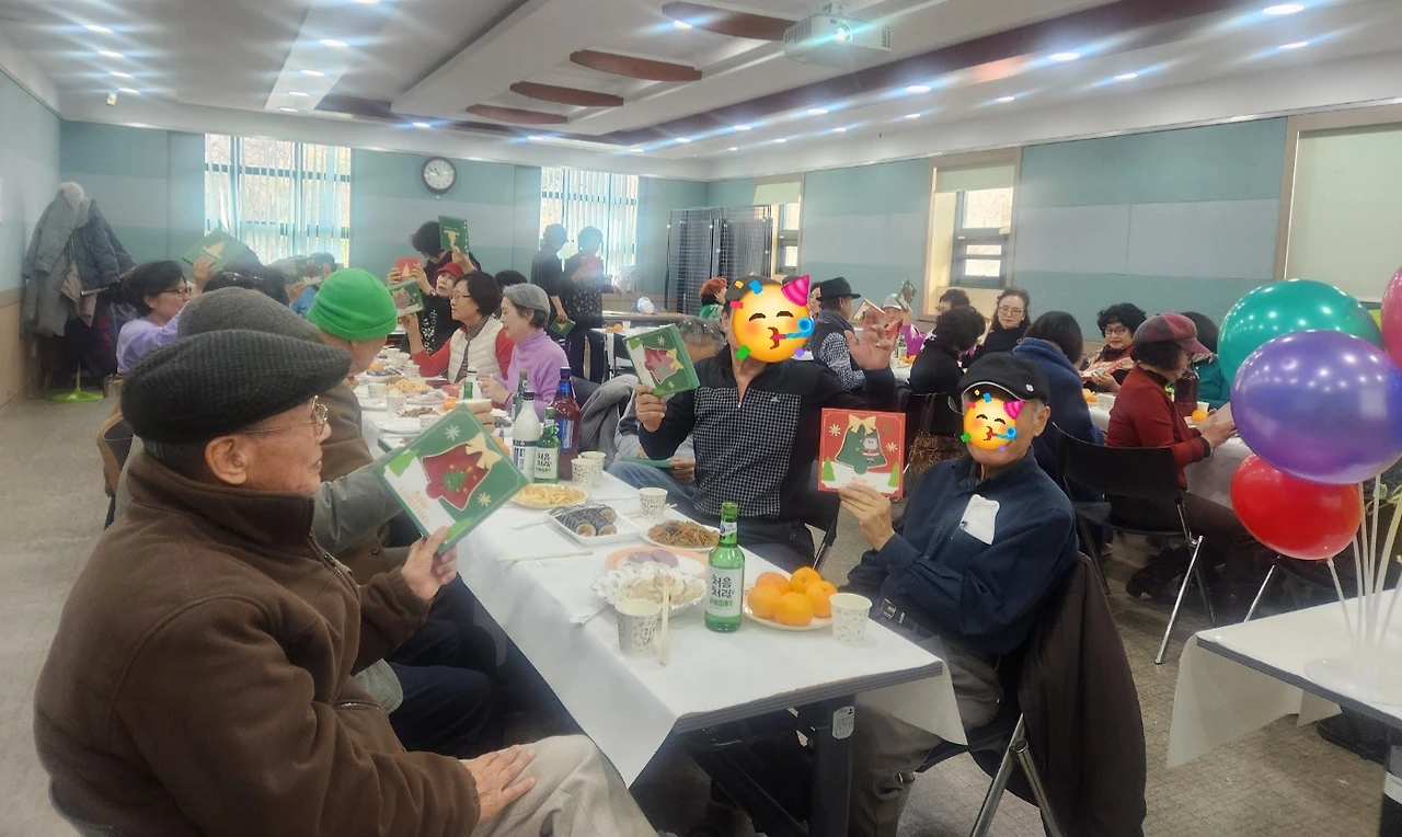 신나는 음악에 맞추어 춤을 추고 서로를 안아주며 한해의 인사도 하고 강사님은 한 사람 한 사람에게 고마움의 인사를 하고