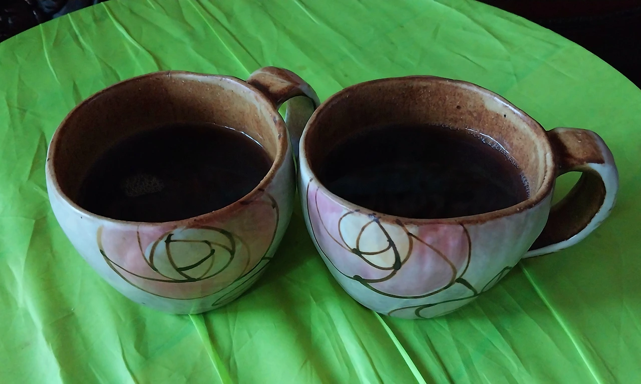 칡차를 마시며 감사 가득 채우고 있다