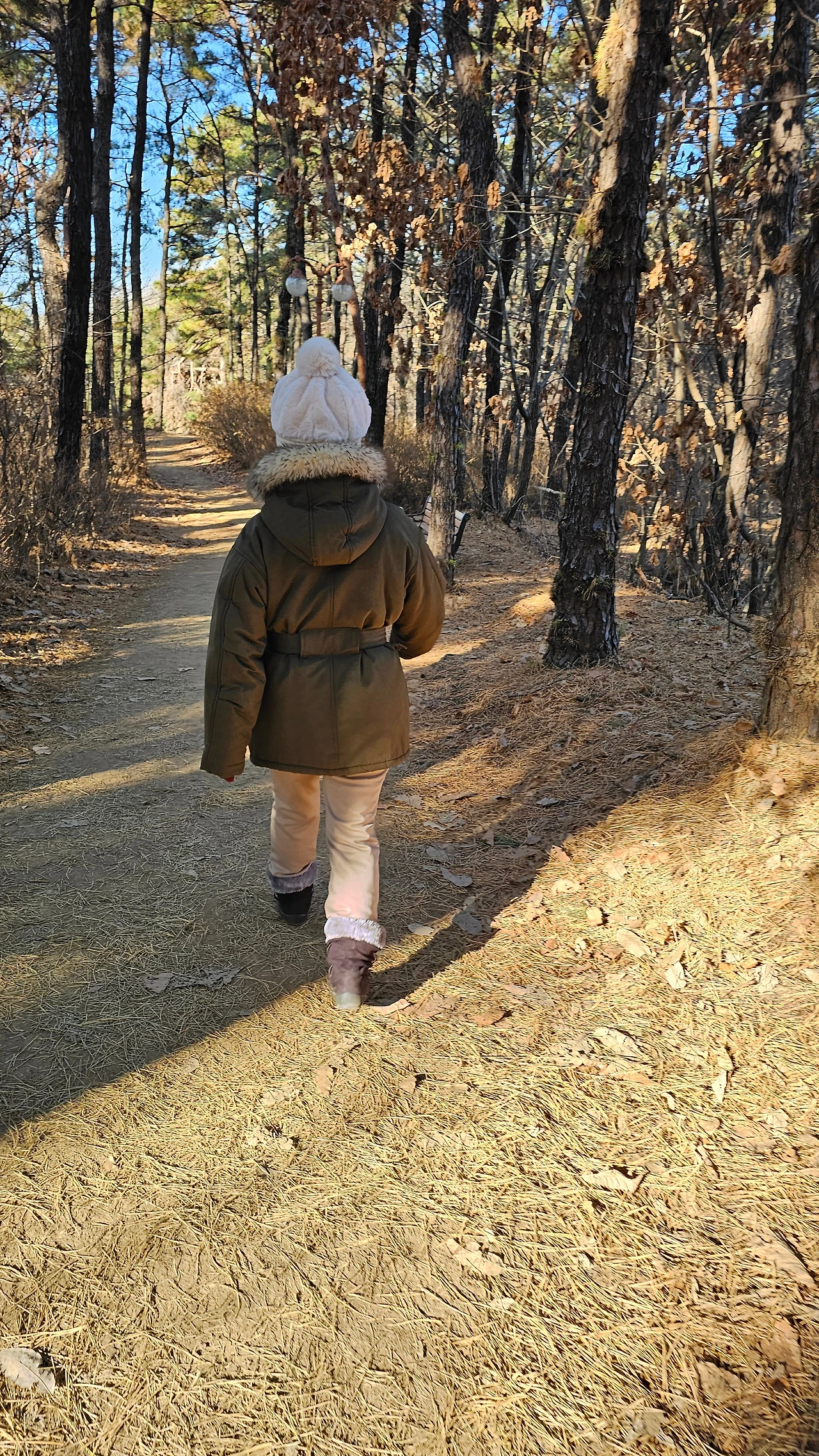 두터운 점퍼에 털모자를 쓰고 털신을 신고 과감하게 운동길에 나선다