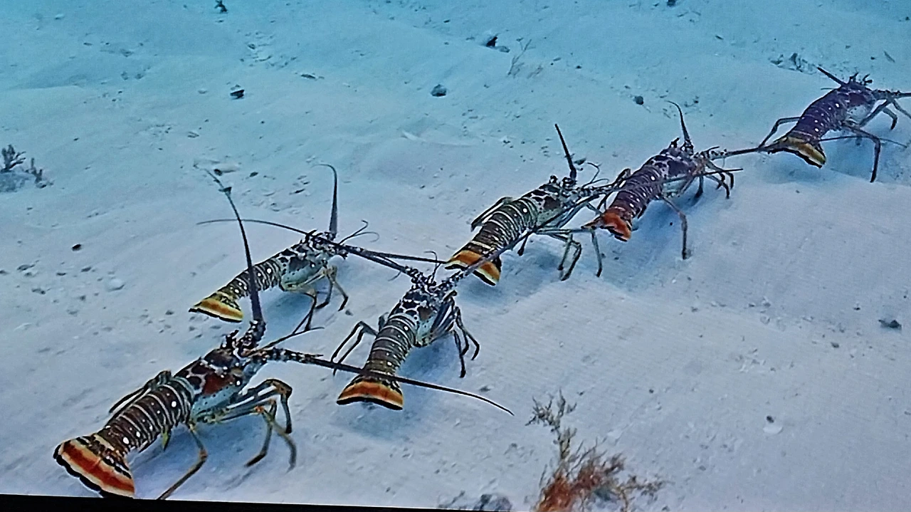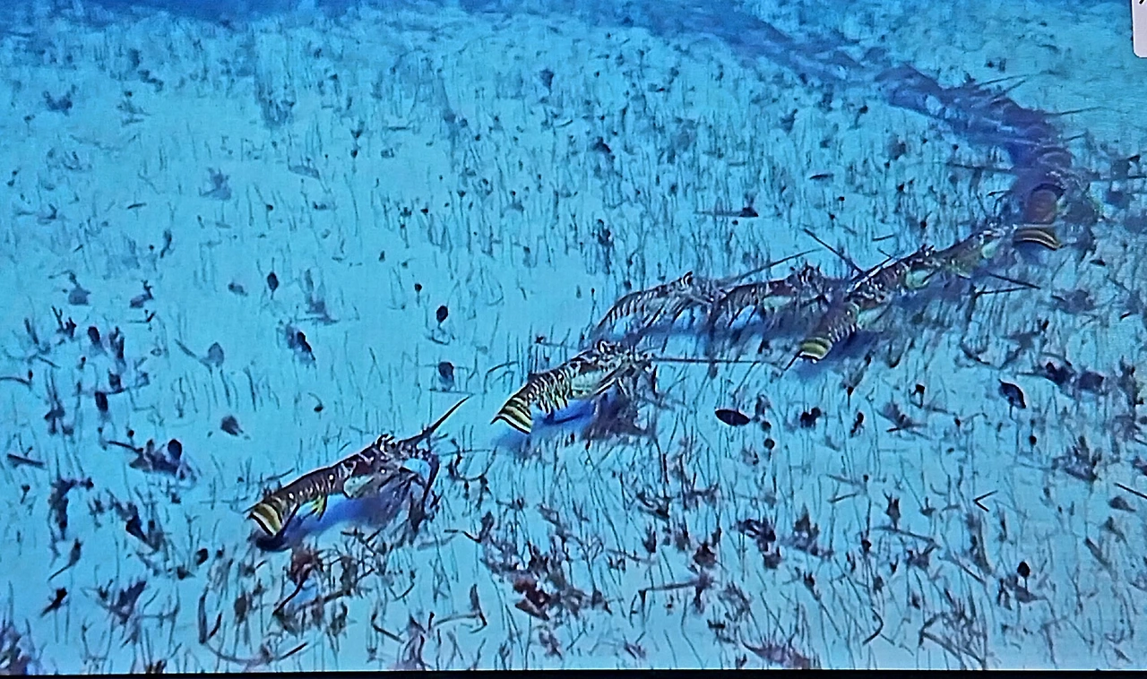 가오리들이 나름 만찬을 즐기고 떠나자 가재들은 더듬이로 서로의 몸을 맞대고 줄을 맞추어 앞서가는 대장의 뒤를 따라가기 시작했다