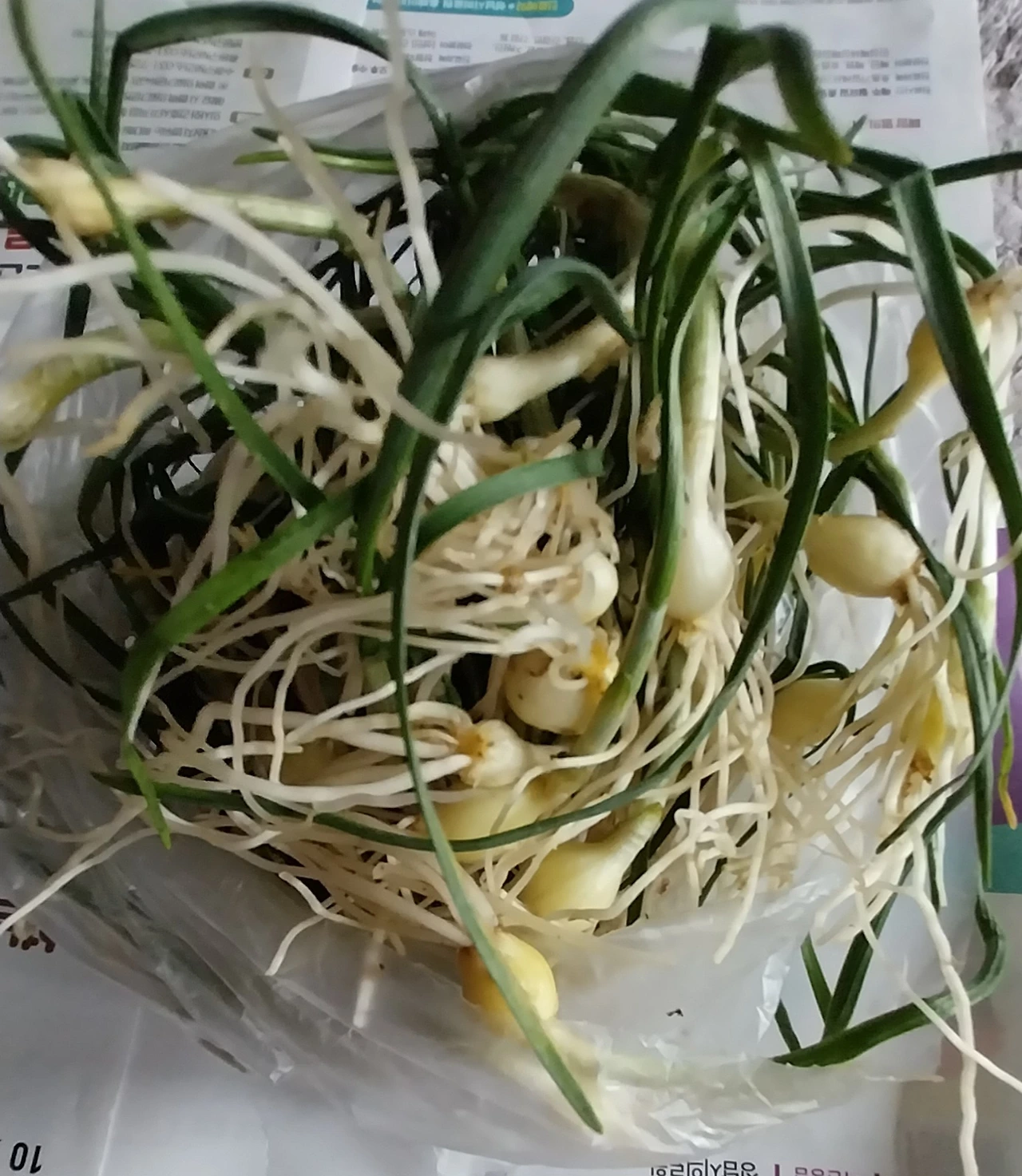 집에 돌아와 거실에서 손질거리 봄나물을 쏟아 놓고 다듬었다
