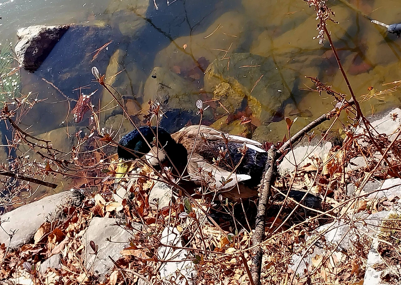 청둥오리 한 마리도 봄잠 즐기고 있다