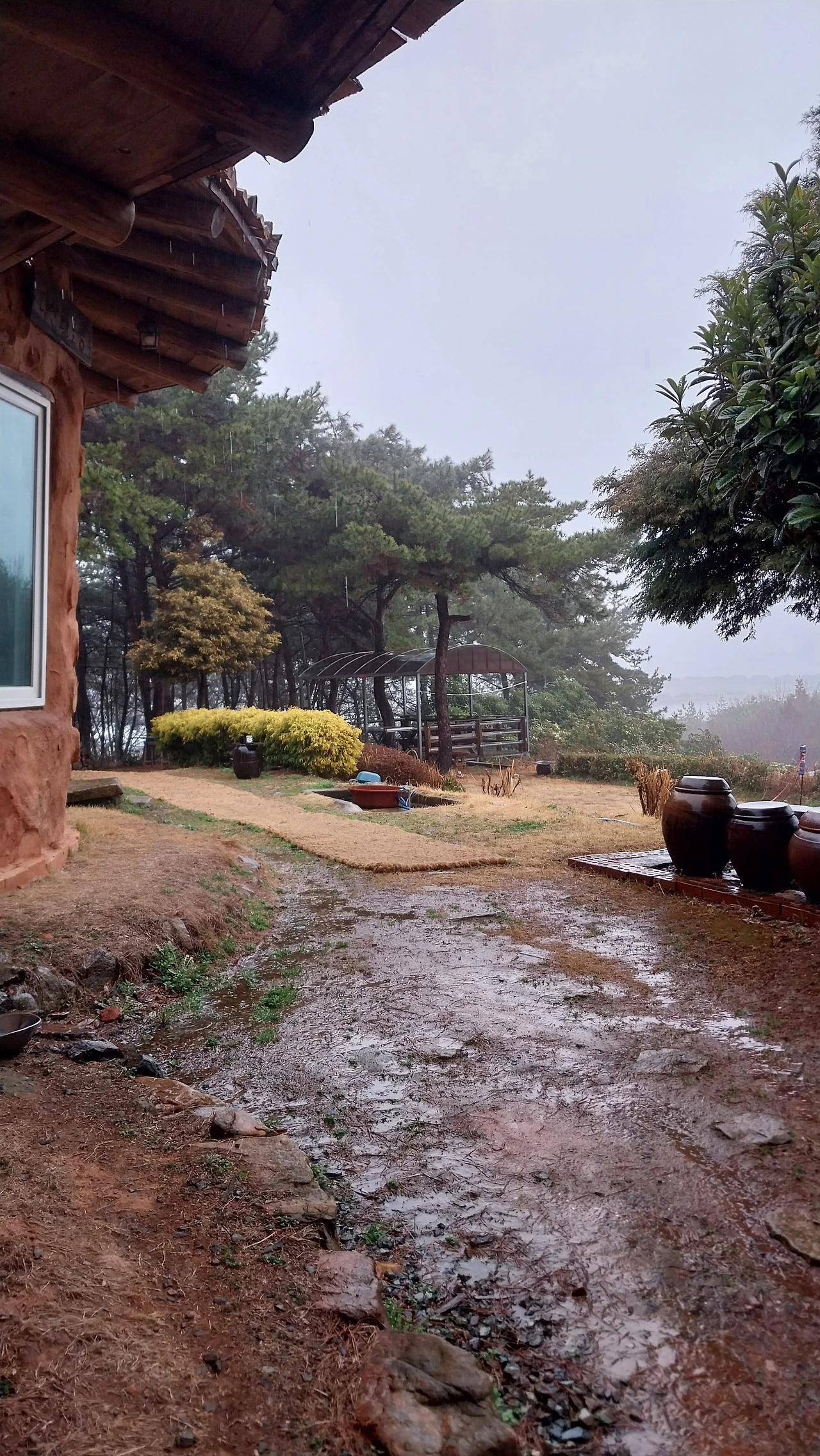 황토집 창밖에는
