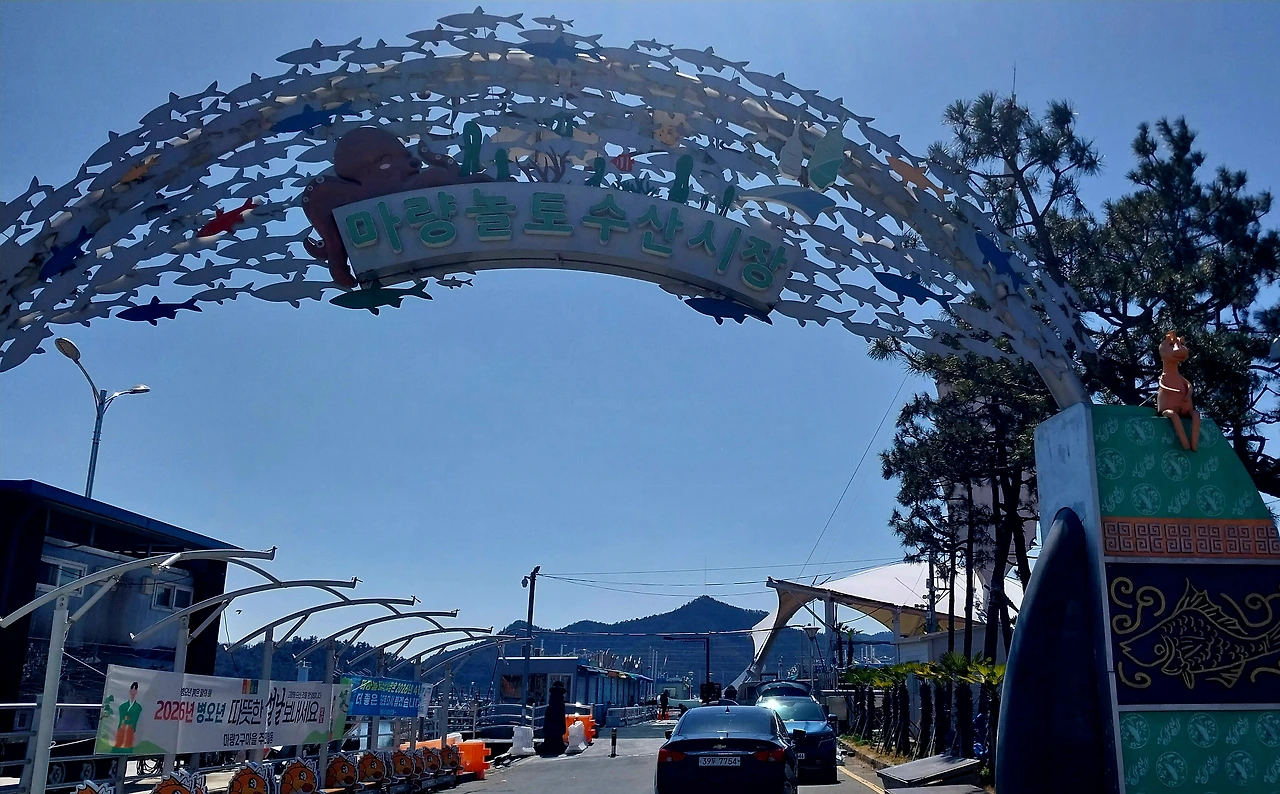 마량놀토 수산시장으로 들어서니 평일이라 모두 문을 닫아서 조형물 감상으로?