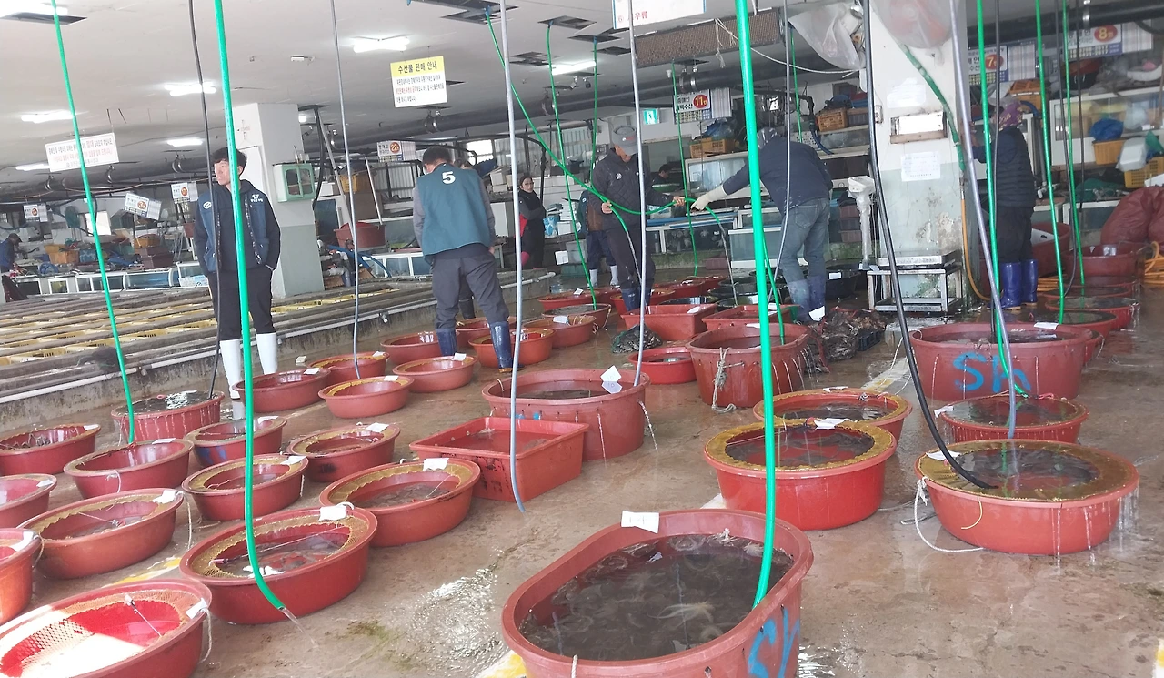 점심도 맛있게 먹고 마량항의 수산물 직판장에 들어가 보았는데 수많은 그릇에 경매를 통해 주인을 기다리는 물고기들이 팔딱이고 있었고 사람들이 모여들기 시작한 것을 보니 아마도 경매시간이 되어가는 것 같았다