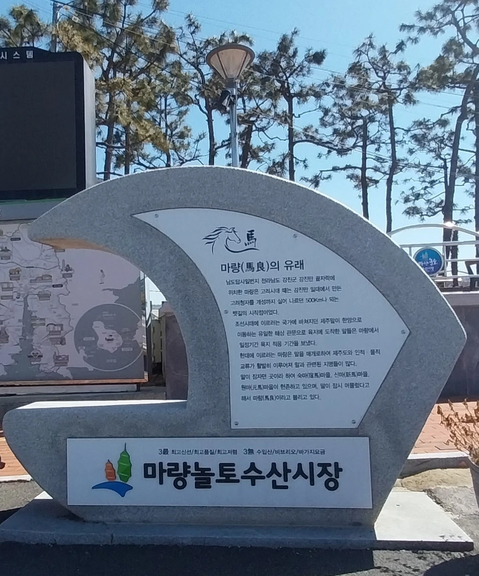 마량 유래ㅡ 조선시대 국가에 바쳐지는 제주말이 한양으로 이동하는 과정에서 말들이 육지 적응기간을 잠시 보냈다 하여