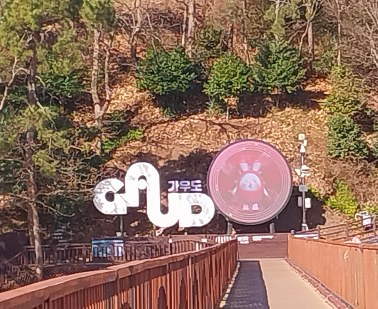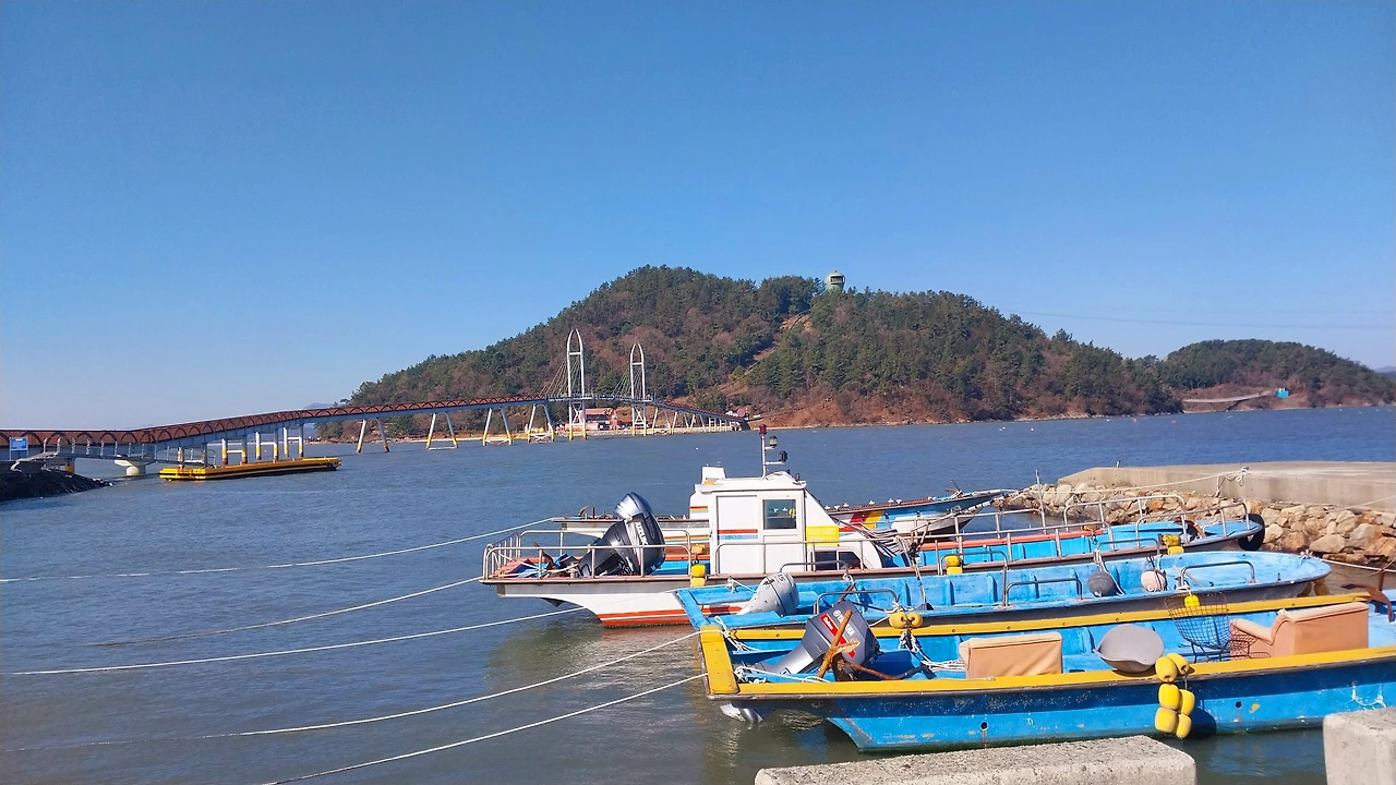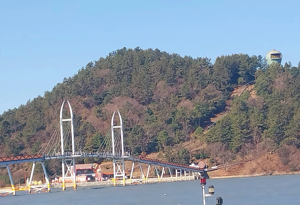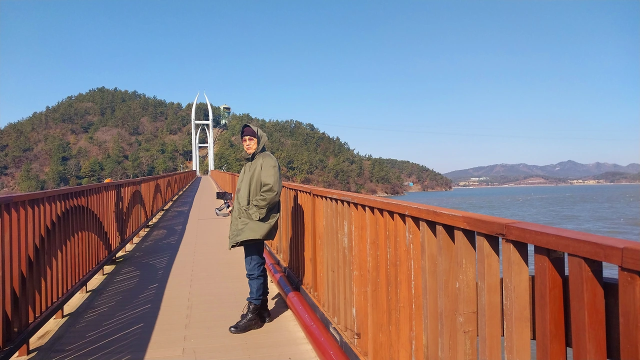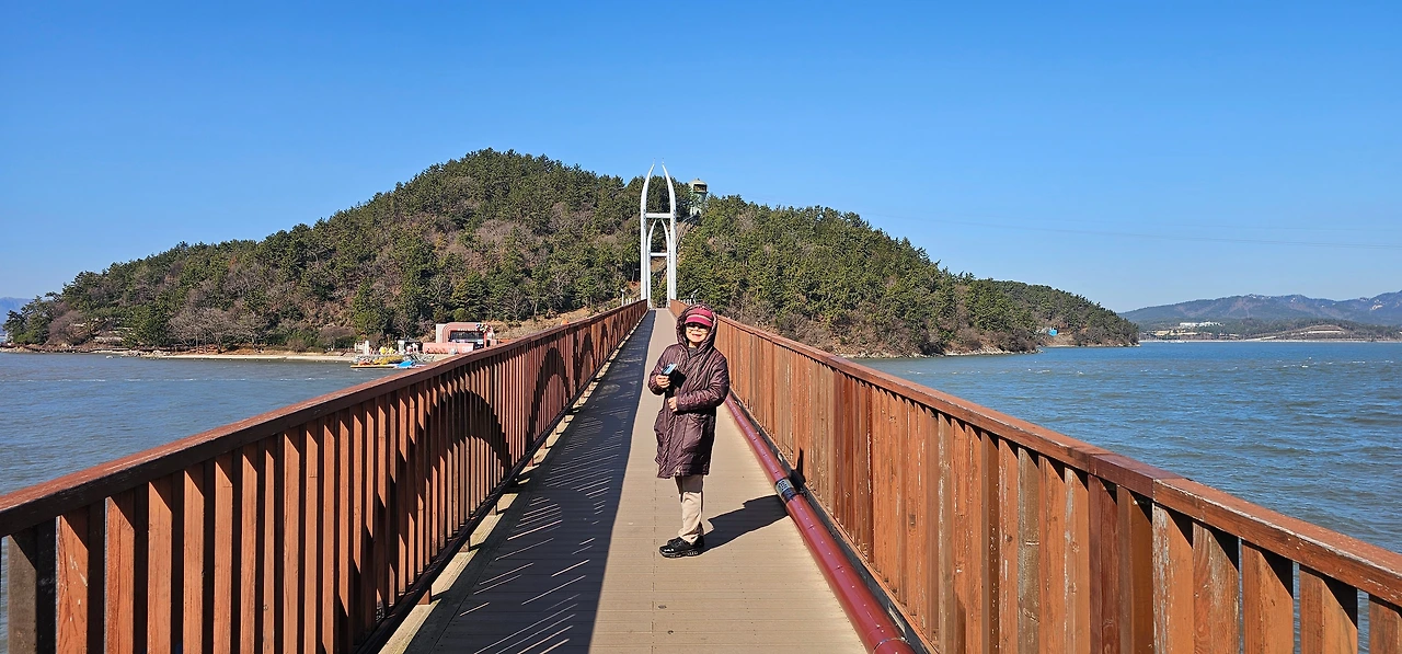 아침 좀 이른 시간이라 바닷바람이 매서워 차 안에 두었던 겨울 파커를 꺼내 입고 다리에 올랐는데 바람이 만만치 않아 다리도 몸도 휘청거려 바람에 쏠리면 어쩌나 걱정이 되었지만 저 앞에 가우도 청자전망대가 어서 오라는 듯했다