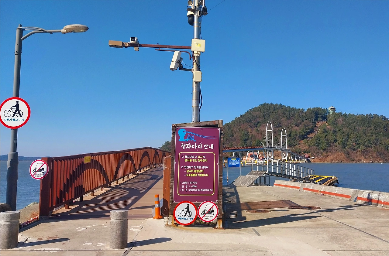 청자 다리는 그 길이가 438m로 남해의 푸른 바다를 가로질러 가우도에 닿아 있었는데