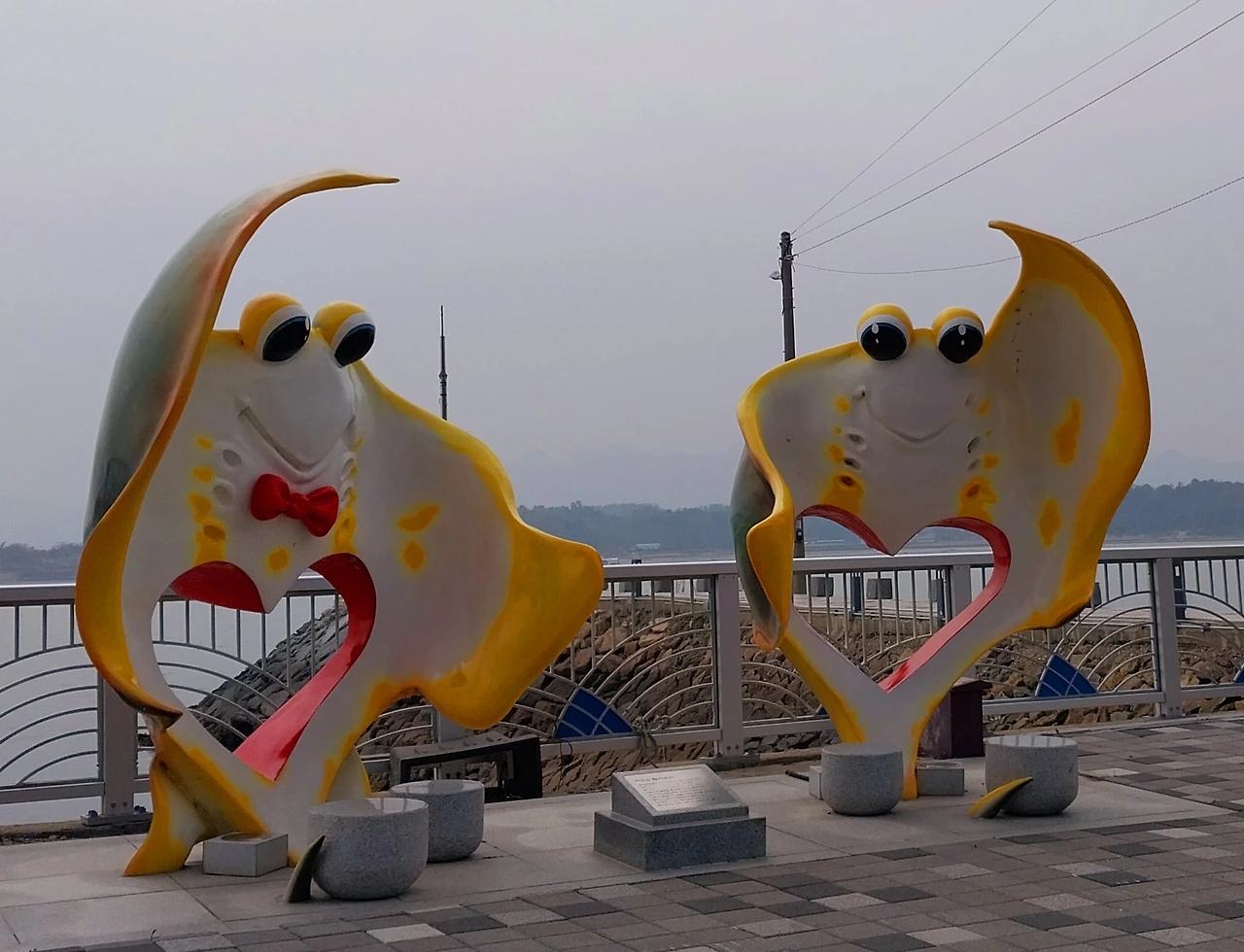 하지만 중간에는 흔들거리는 부분이 있어 아! 여기가 흔들 다리구나라고 웃으며 다리를 건너 커다란 가오리가 반기는 가우도에 도착했다